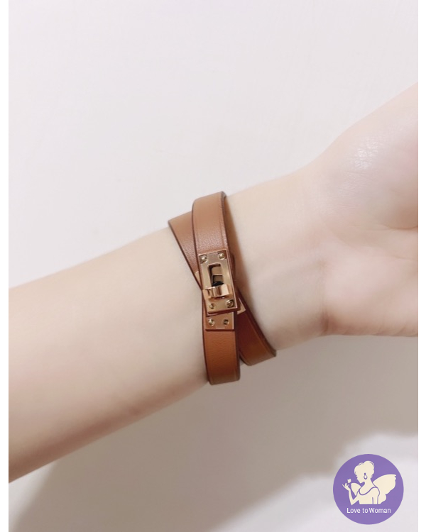 ​Hermès 愛馬仕 經典 細版 Gold金棕色配玫瑰金 mini Kelly 雙圈 手環 Bracelet mini Kelly T2全新✨