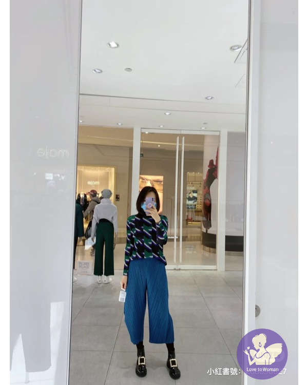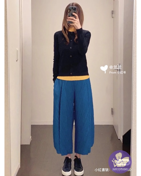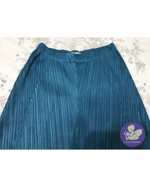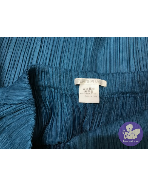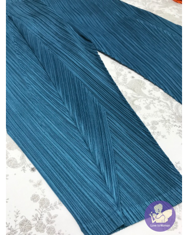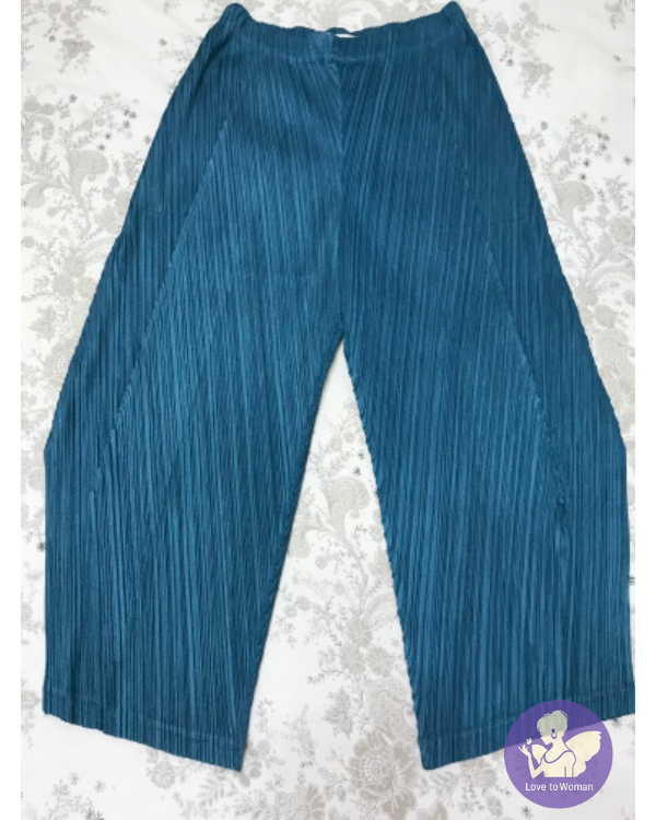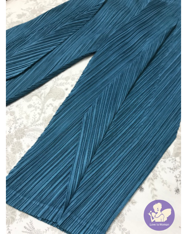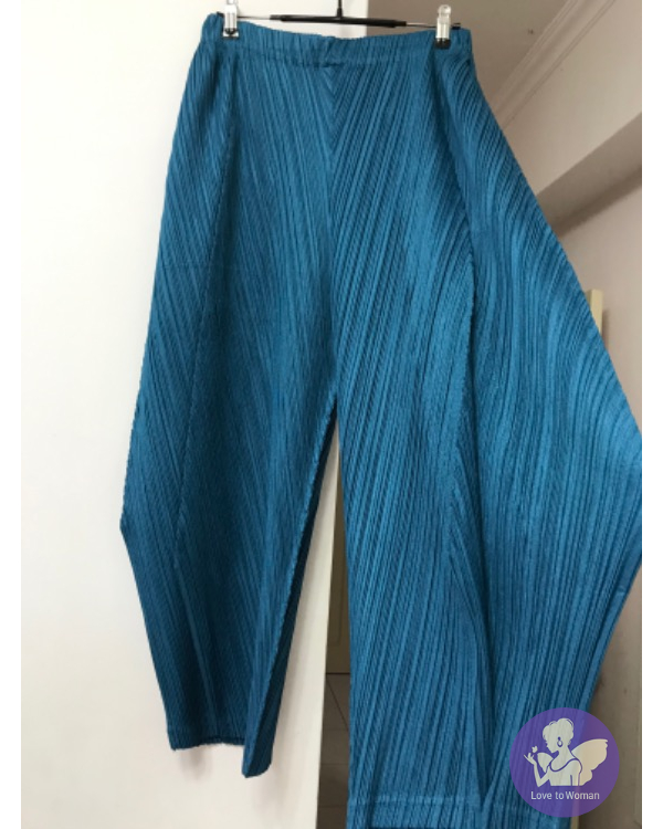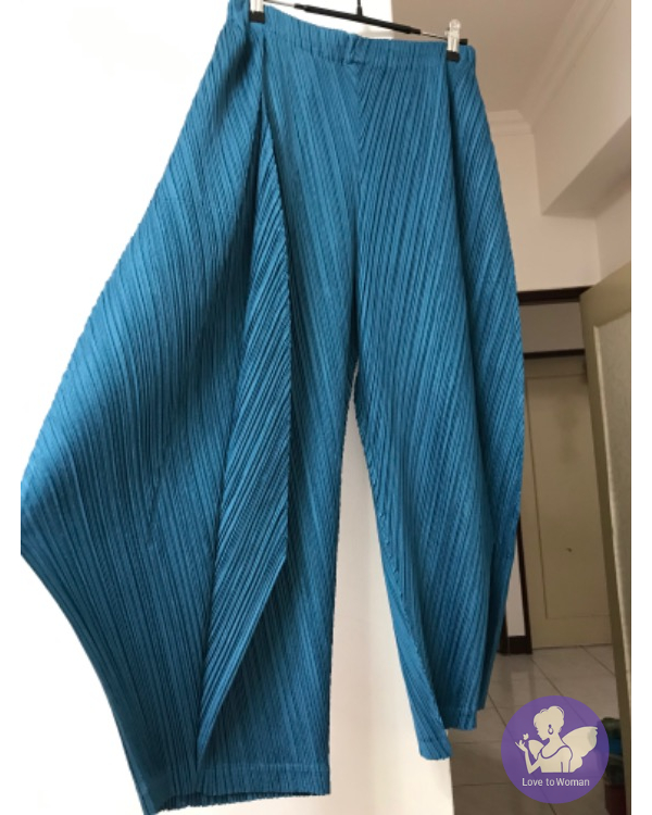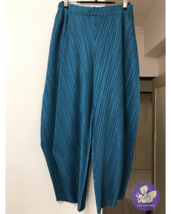 售三宅一生Pleats Please孔雀藍色皺褶造型寬褲,專櫃缺貨款,褲管是特殊壓紋造型,厚料的垂墜感很好,