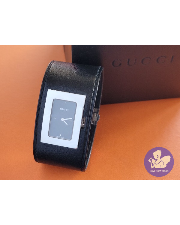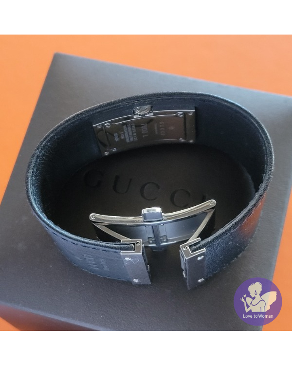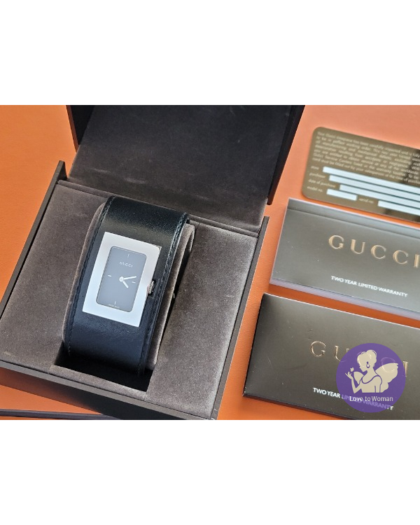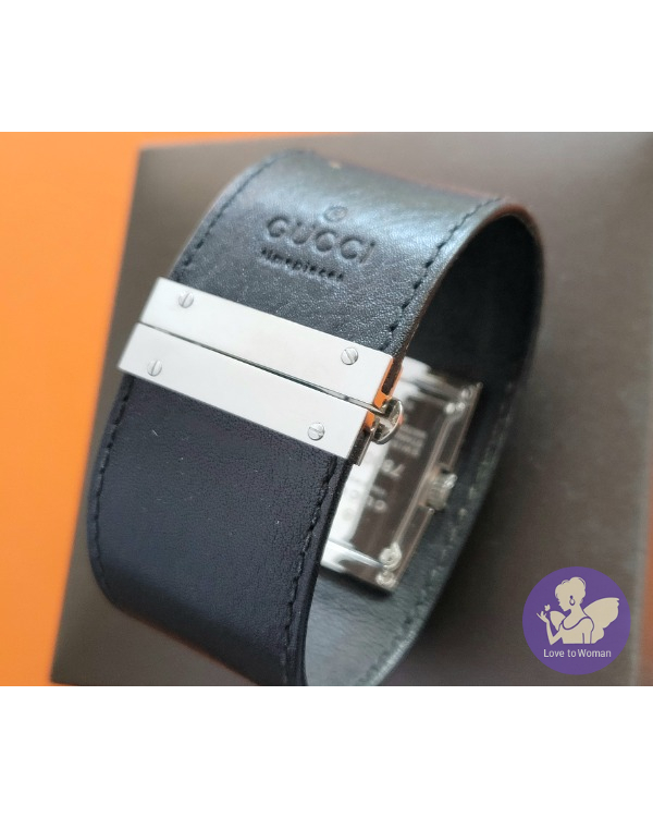 ~GUCCI 附原廠盒 寬版黑色皮帶長型款式手環/手錶
