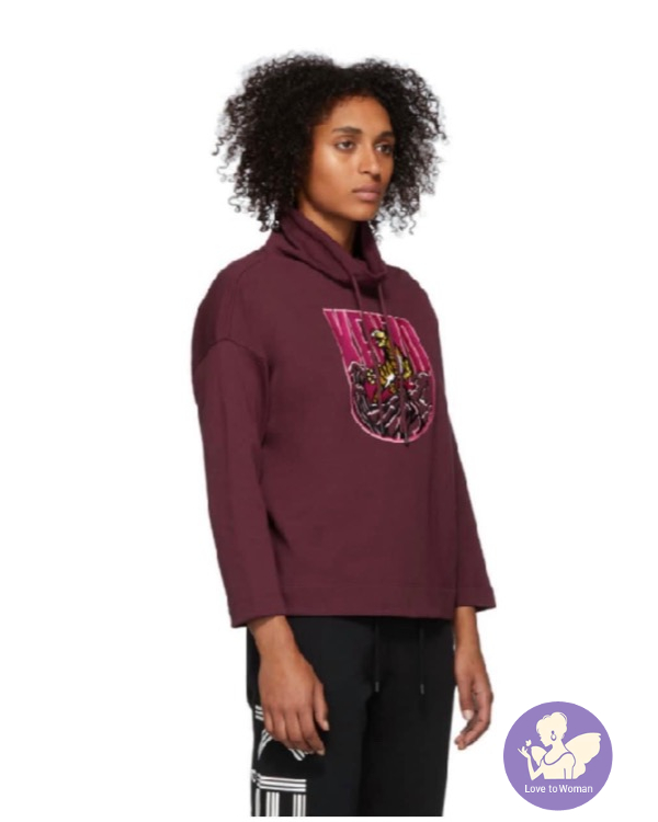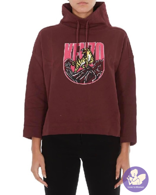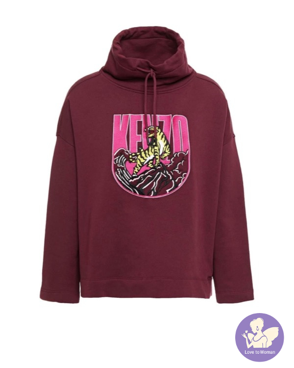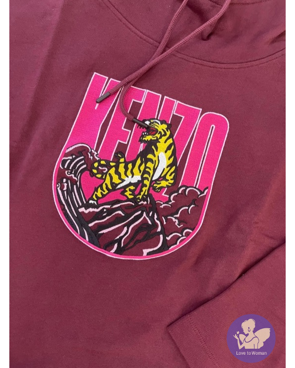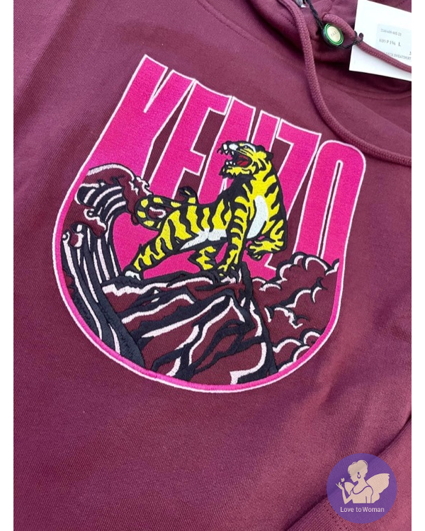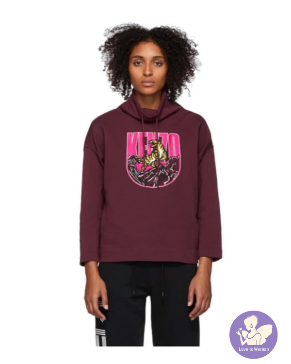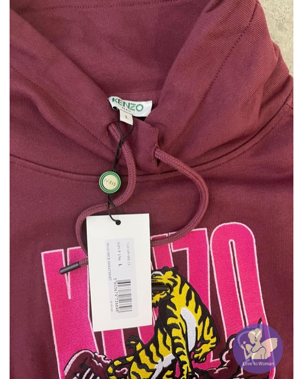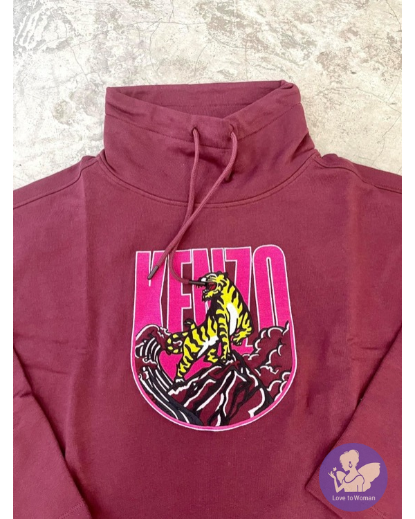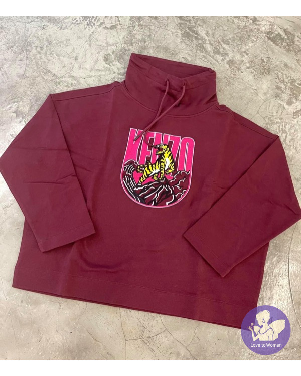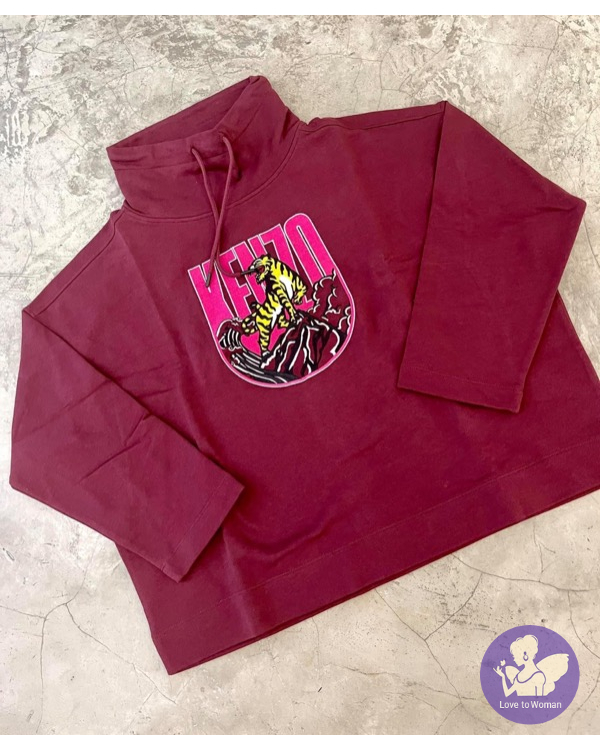 全新Kenzo 棗紅色刺繡老虎立領9分袖衛衣女裝 M, L 碼各一件