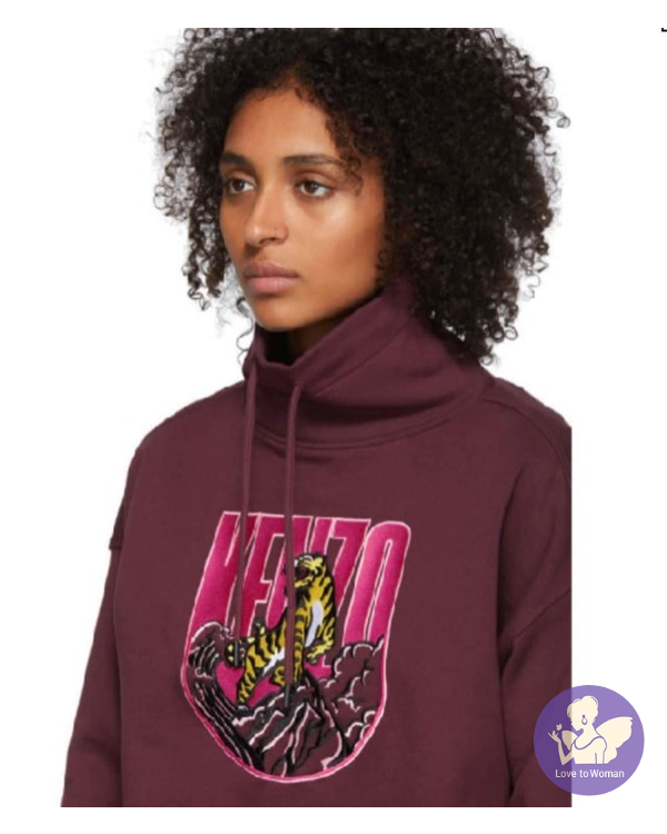 首頁 精品服飾 全新Kenzo 棗紅色刺繡老虎立領9分袖衛衣女裝 M, L 碼各一件