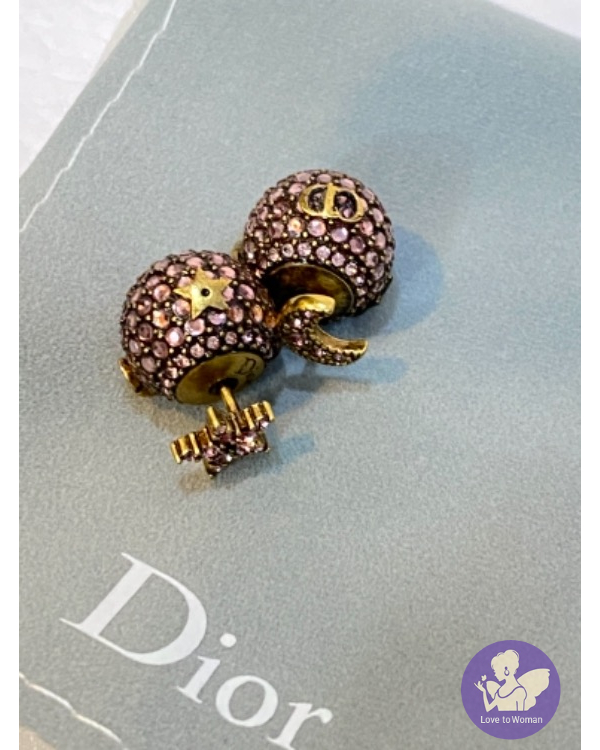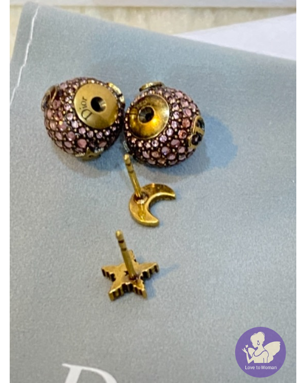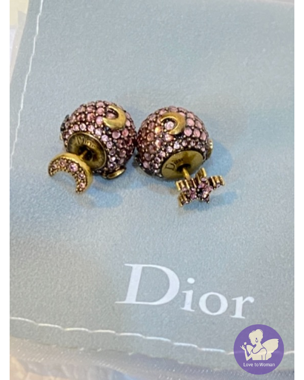 這款 Dior Tribales不對稱的設計 正面飾有星星月亮粉色水晶為這個耳環增添了閃耀的光芒,更在後方大珠子上設計有品牌最鍾愛的 CD、⭐️????星星和月亮????月亮圖案????