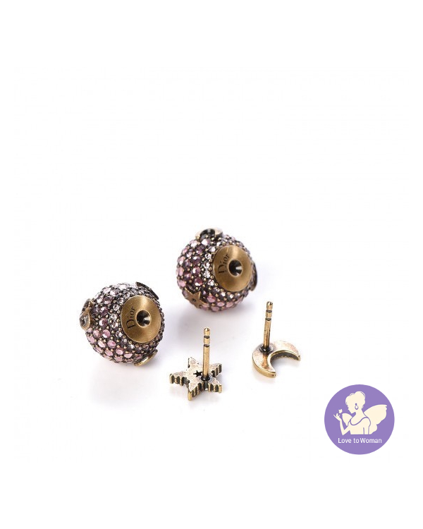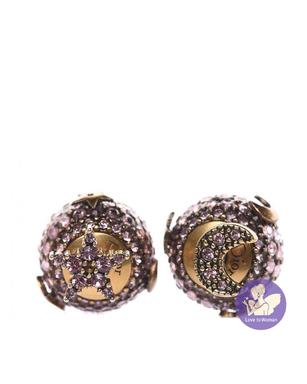 DIOR 經典 TRIBALES 水晶+星星月亮復古金色粉鑽耳環