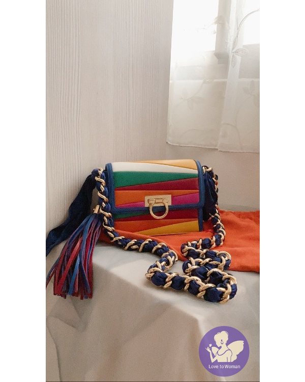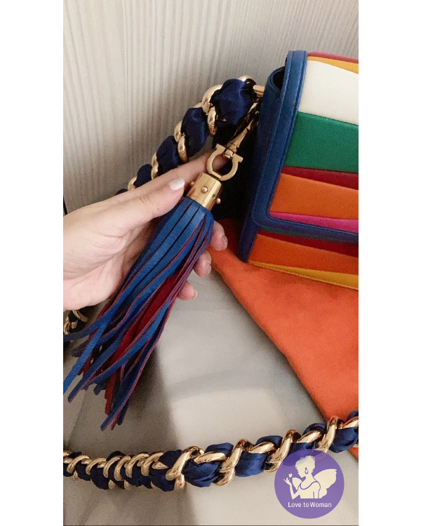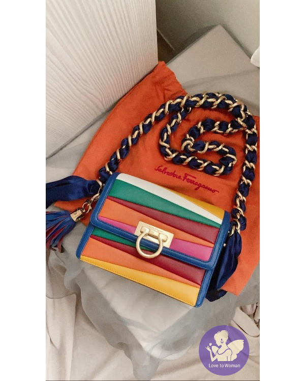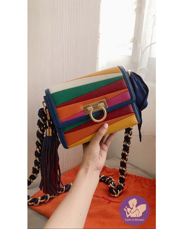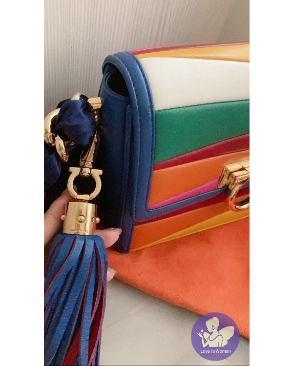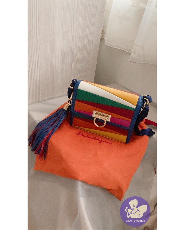 產品信息 Ferragamo彩虹澎澎羊皮鍊帶包 狀態很好 使用約5次以內 當初被小尺寸+流蘇迷倒! 實在超可愛的~ 流蘇吊飾可以取下單獨使用喔。 金屬部分、金鍊、羊皮狀態都不錯 配色非常可愛 也很適合接下來xmas、過年使用! 小小的卻很好裝 算是小而不廢的包 背面還有一個小費帶。 原價$77900 出清特價$22000含郵資 會附上收納袋 沒有想要出售過所以其他收據沒有保留。