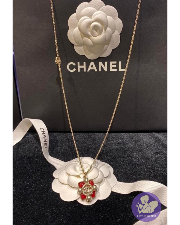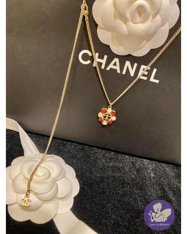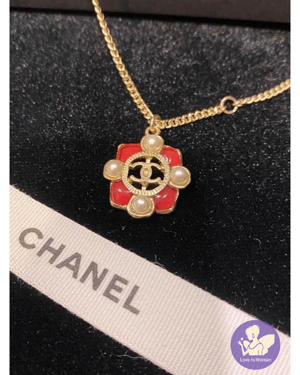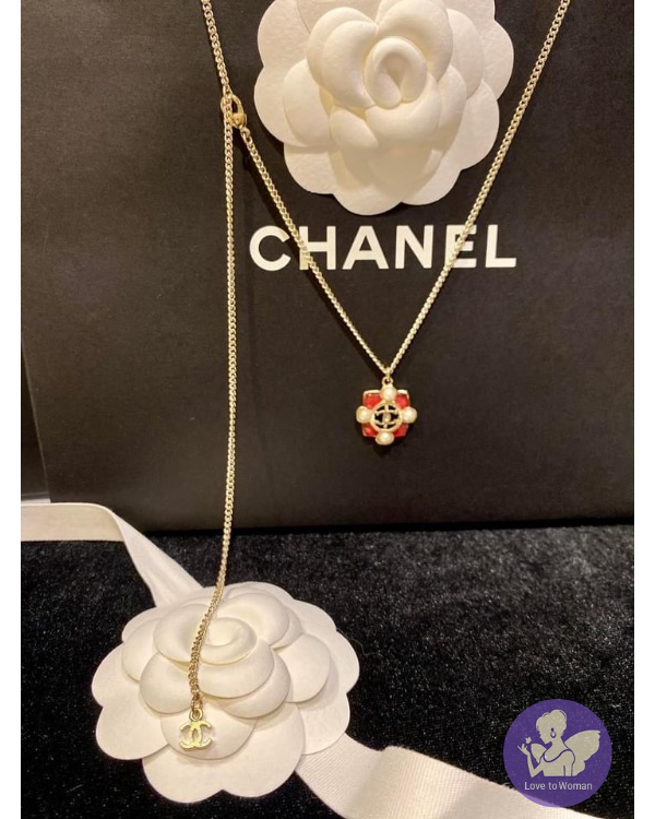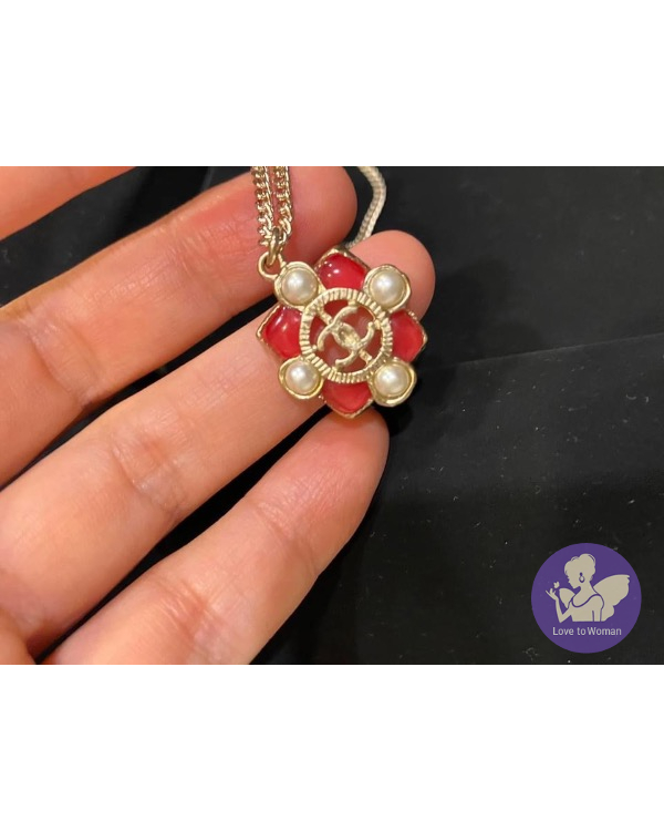 CHANEL 珍珠+粉紅樹脂寶石項鍊 #二段式可調節