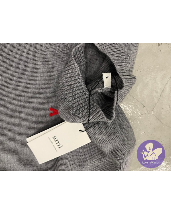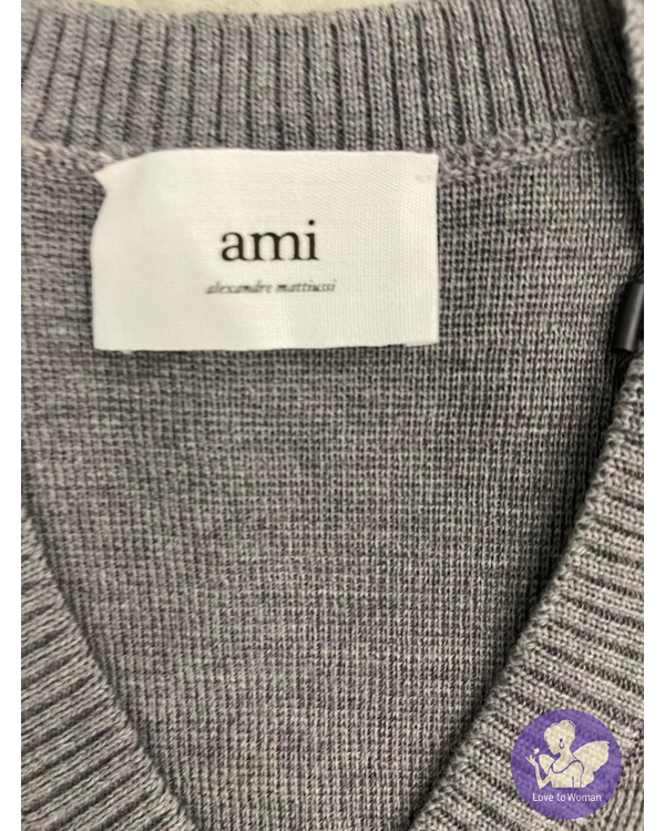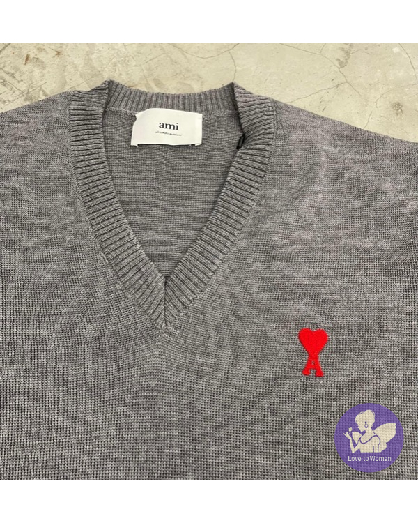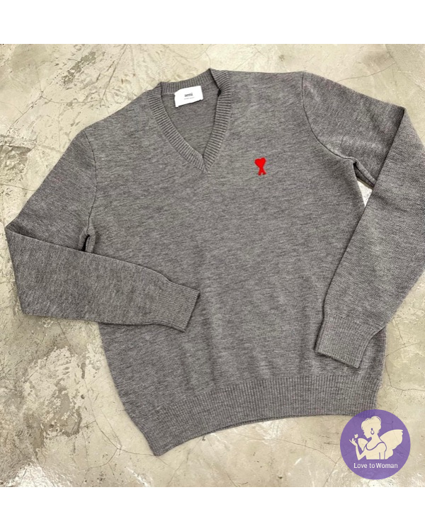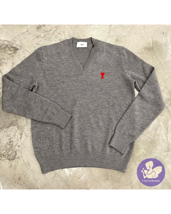 全新AMI Paris 灰色小愛心oversized V 領 毛衣 M碼,寬鬆款 (S 到L可穿)男女可穿,大熱文青款。另有L 號可私我開版