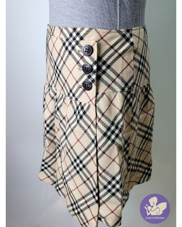 產品信息 *****寵愛賣家認證A000071 售價2500 ~BURBERRY 經典駝色格紋拉褶裙~38號 原購價8000.日本製.毛料裙.品牌辨識度高.單片全穿起來年輕俏麗 尺寸:腰圍27吋內.群長45cm 輕微接觸痕.介意請勿下標(實物拍照請見各圖) 裸件.出貨會包好 得標者請二日內匯款完成.含運費 售出不退