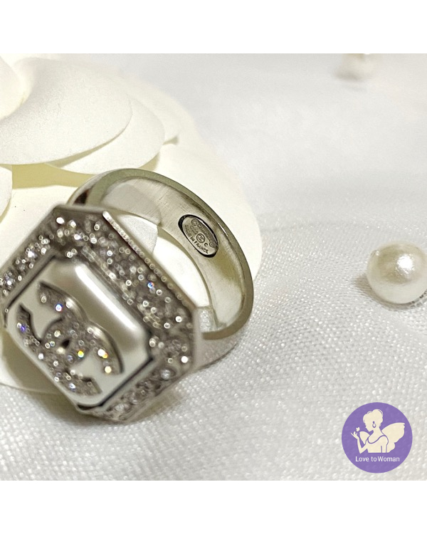 首頁 精品手錶 ​CHANEL 香奈兒 小香 22C 新款 方形 珍珠 雙C 水鑽 戒指 50號 全新✨