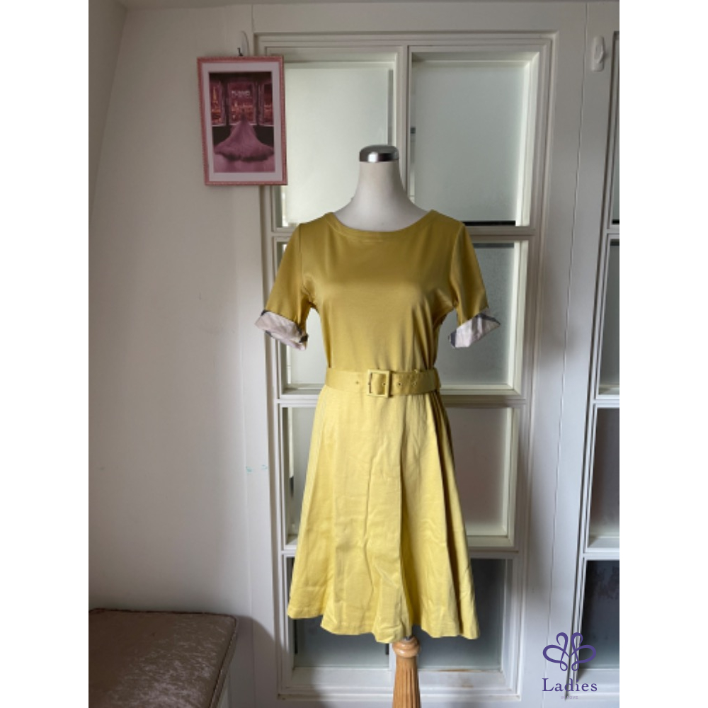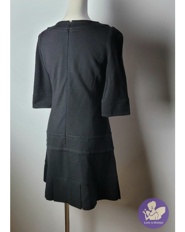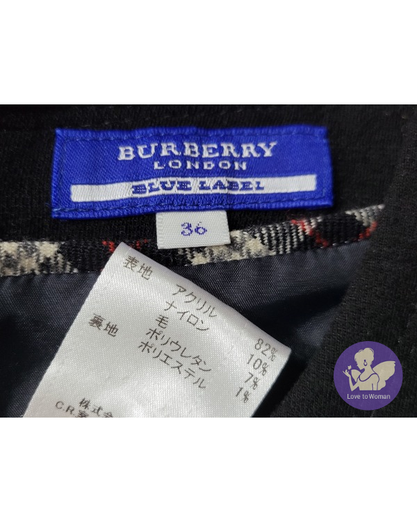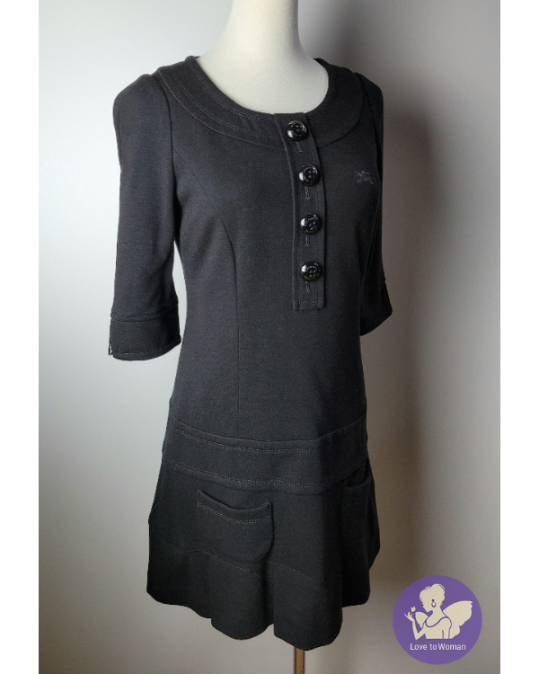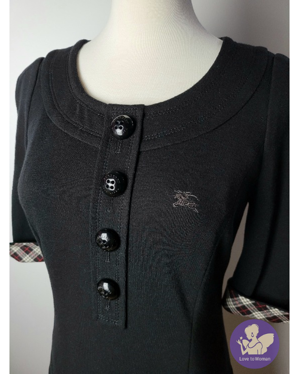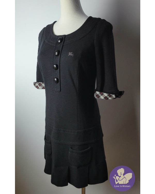 ~BURBERRY 黑色毛料六分袖圓領大圓扣子洋裝~36號