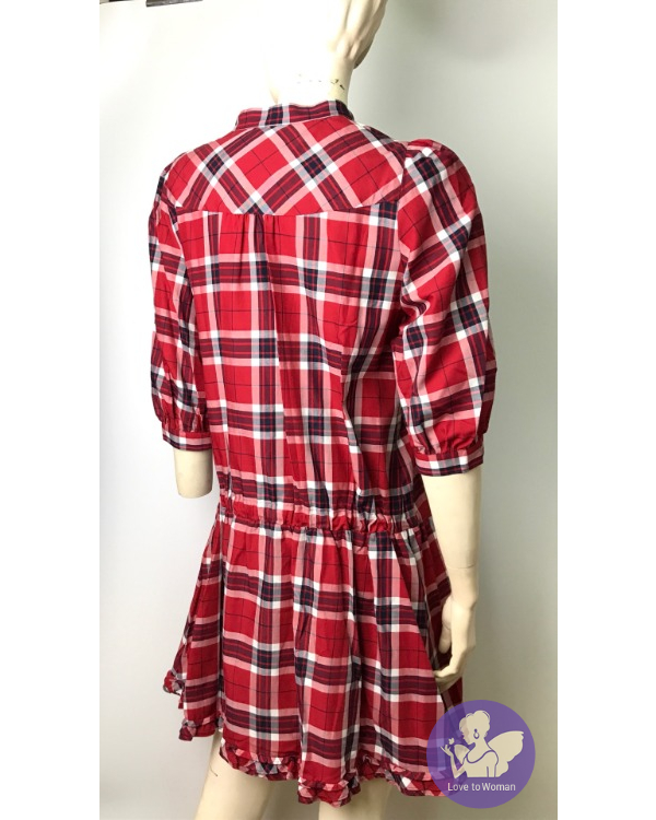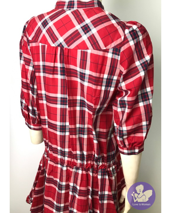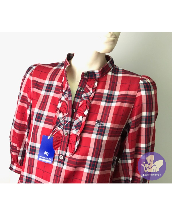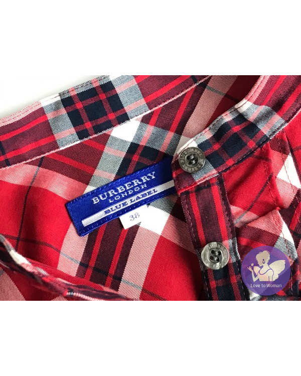~BURBERRY 全新 紅底黑白紅色格條紋洋裝~38號