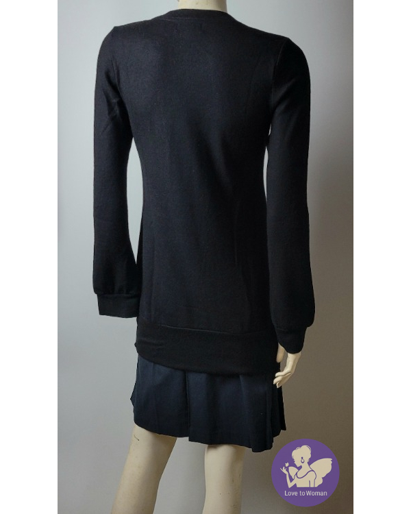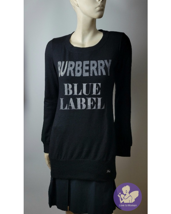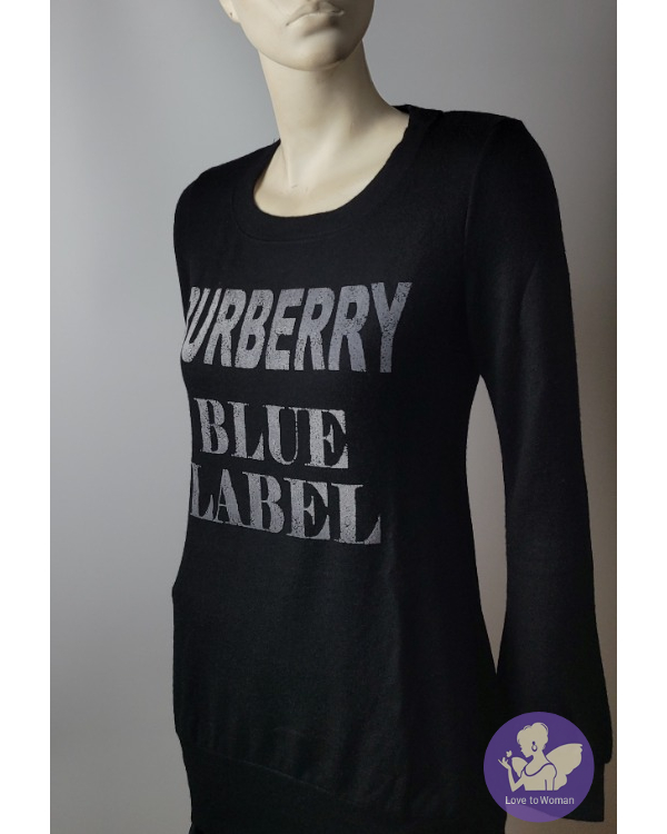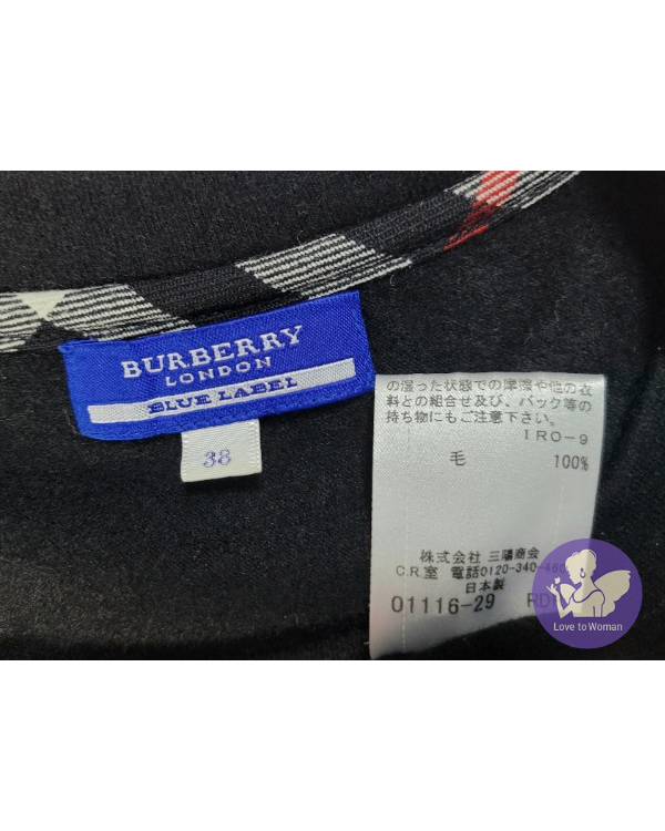 ~BURBERRY 黑色長版大字體LOGO毛料長袖上衣~38號