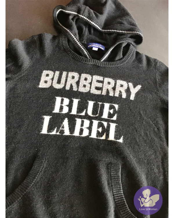 ~BURBERRY 極新極美 黑色連帽子長版大字體LOGO毛料長袖上衣~38號