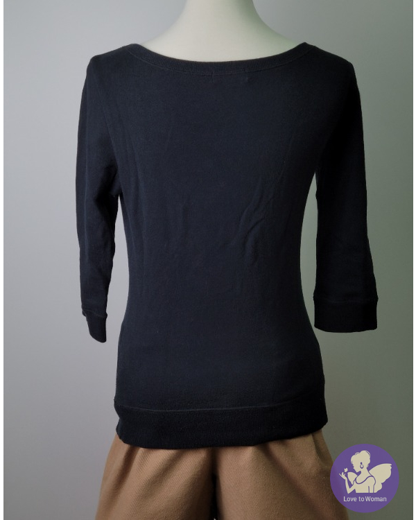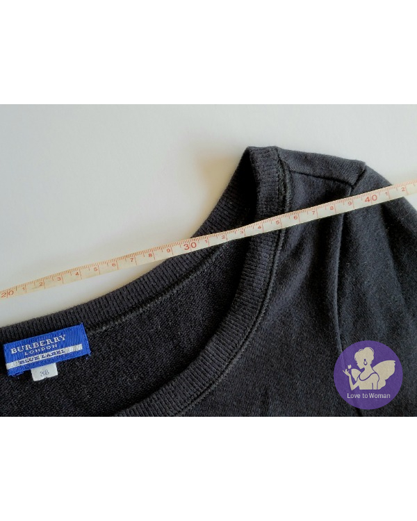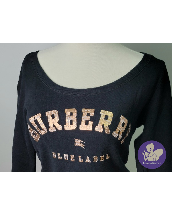 ~BURBERRY 黑色胸前大圓領金色大字體LOGO七分袖上衣~38號