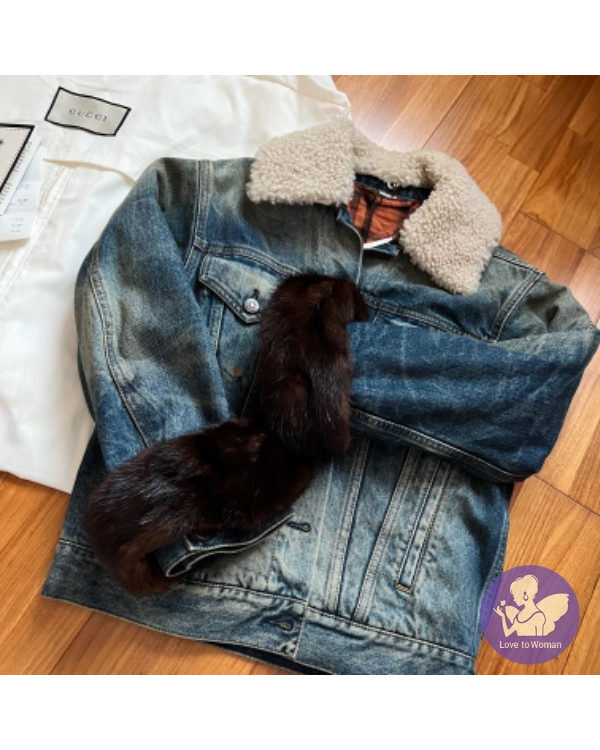 Gucci女生羔羊毛領 做舊鋪棉外套