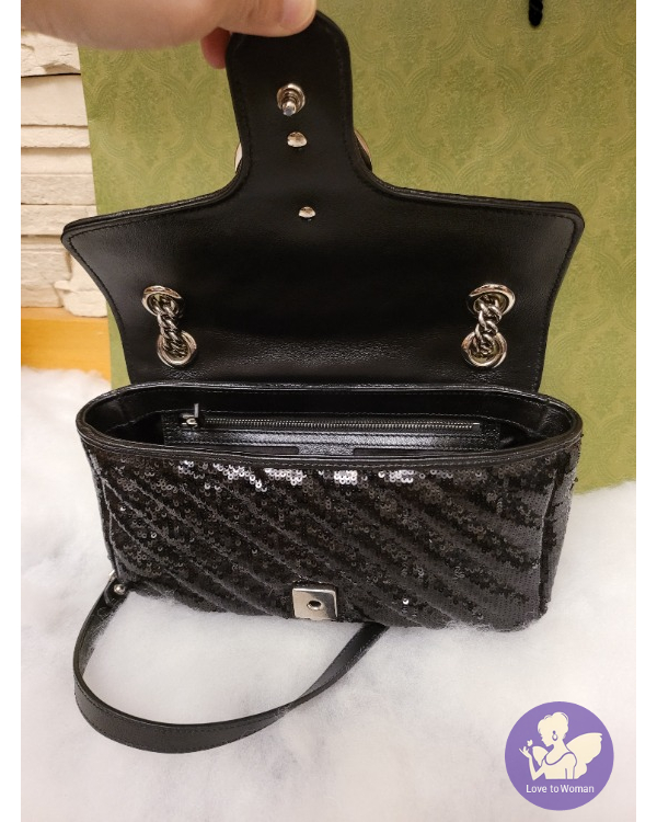 Gucci家最經典最熱賣的款式,今年最新款的亮片款,它的亮片質感超級好,而且不會勾衣服,而且又非常好搭配,看膩了黑色皮質款的姐妹這個是最好的選擇,配件~購證,盒子,袋子都有,大全配,喜歡別錯過了