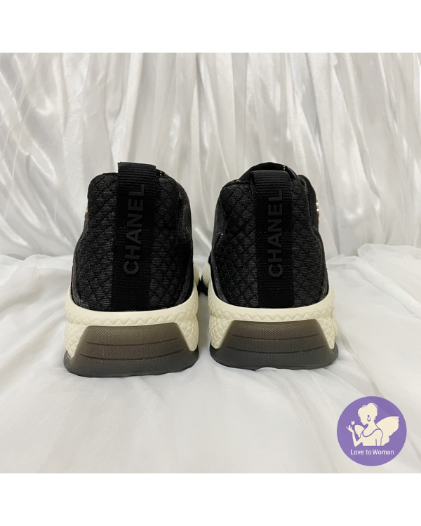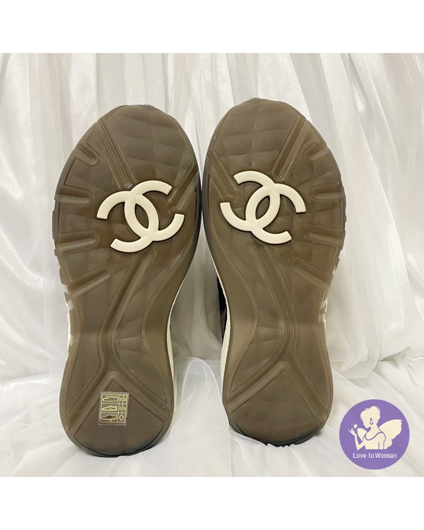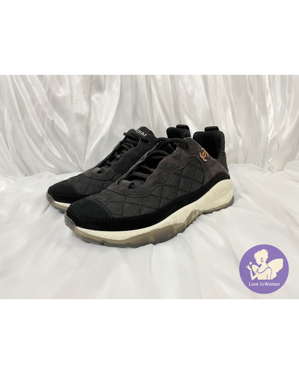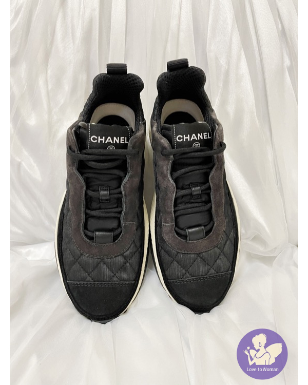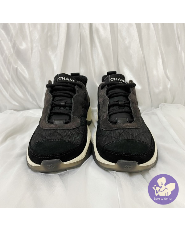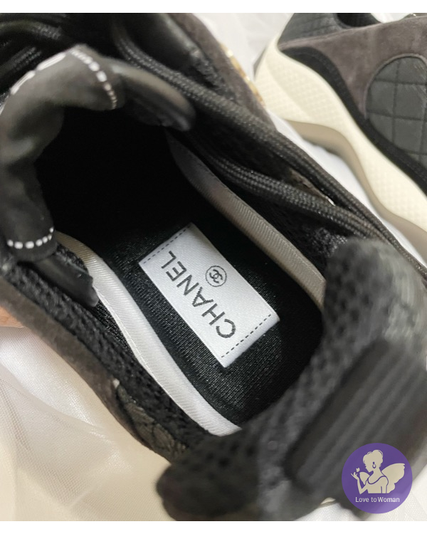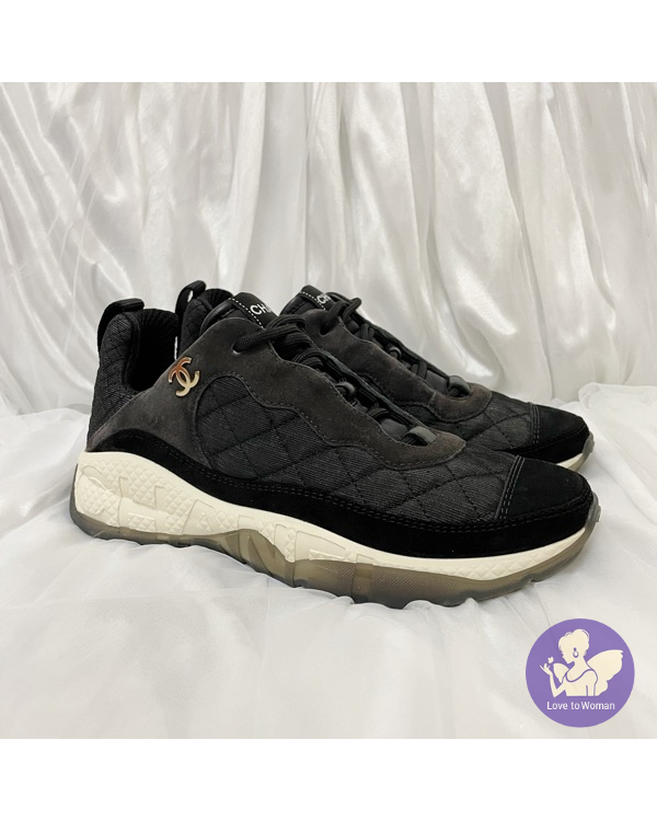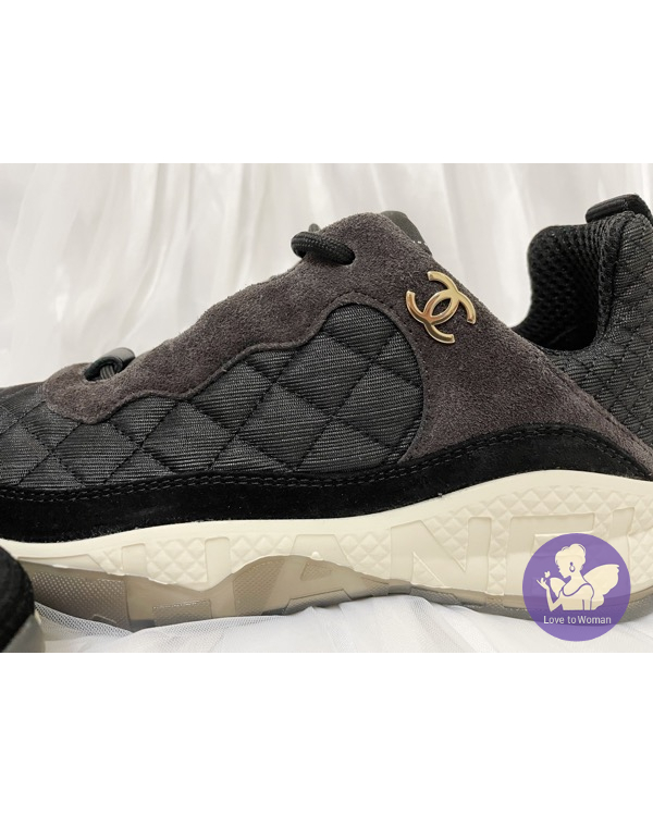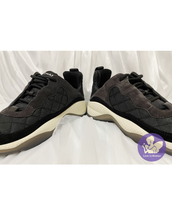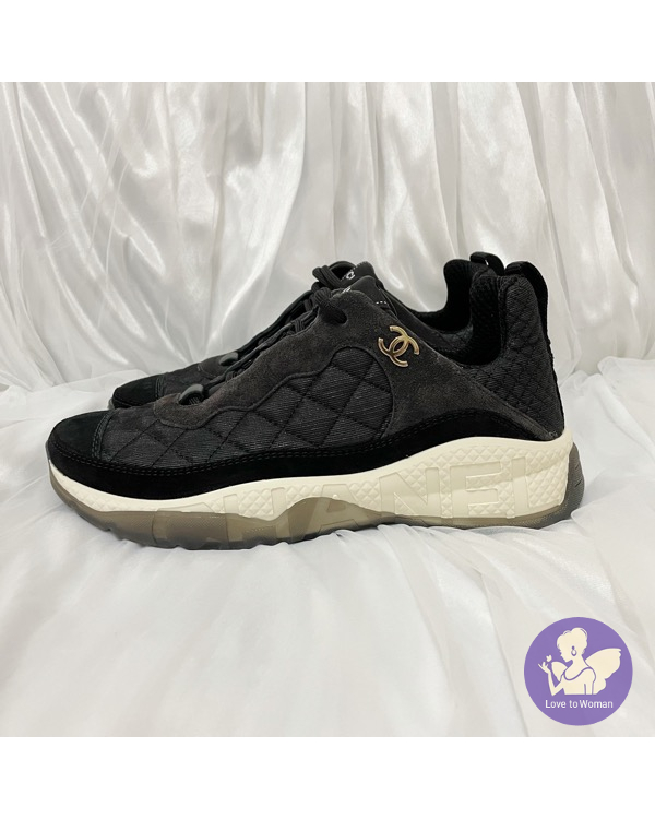 ​CHANEL 小香 香奈兒 新款 黑色 菱格紋丹寧布拼接麂皮 淡金logo 鞋跟底部 字母字樣 老爹鞋 籃球鞋 球鞋 38號 全新✨