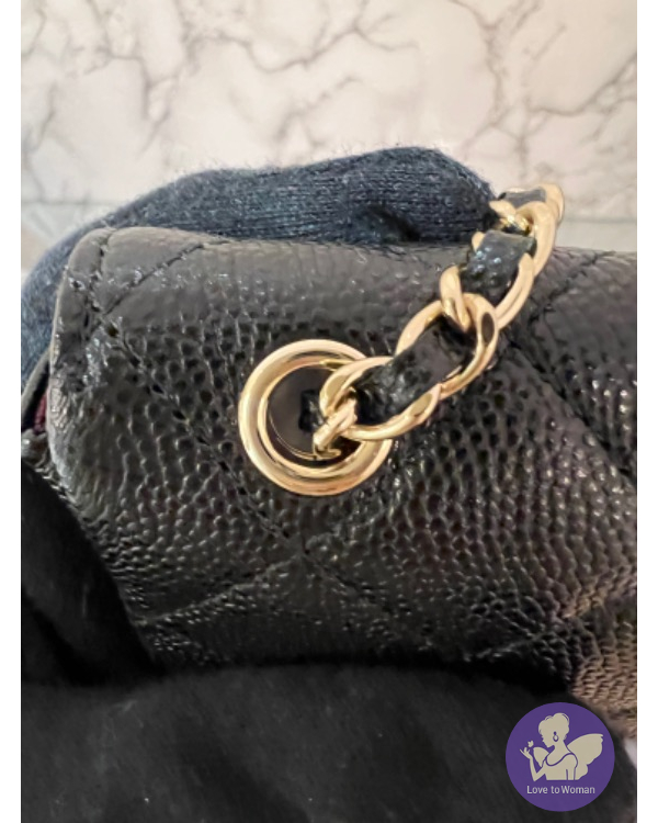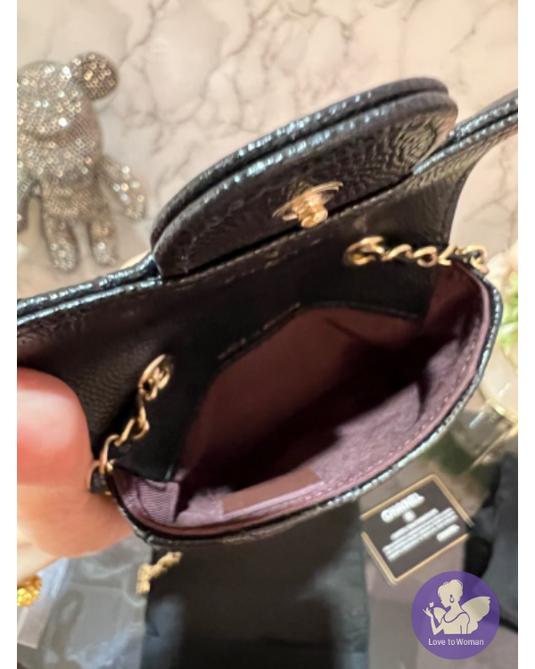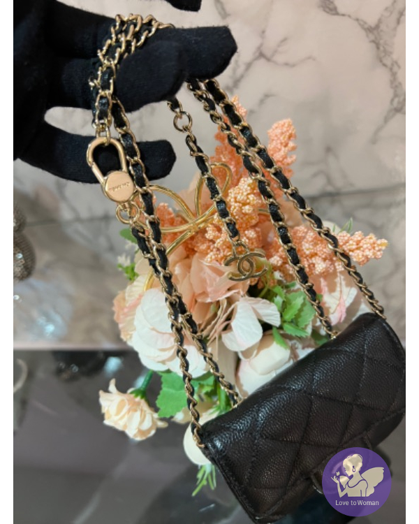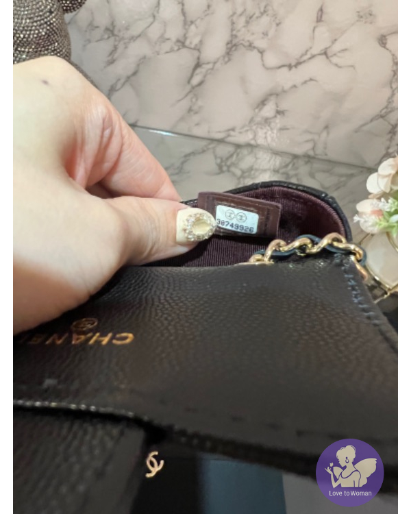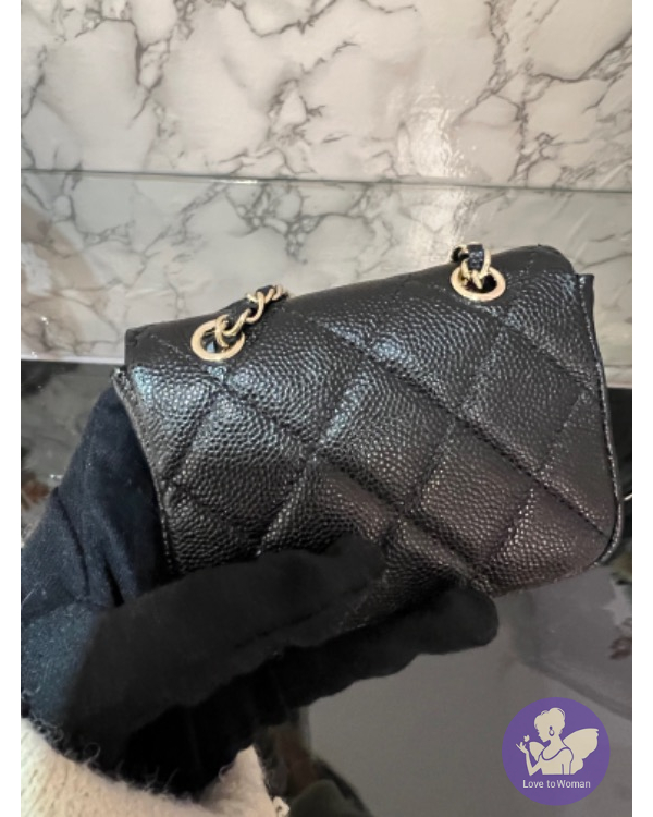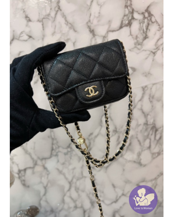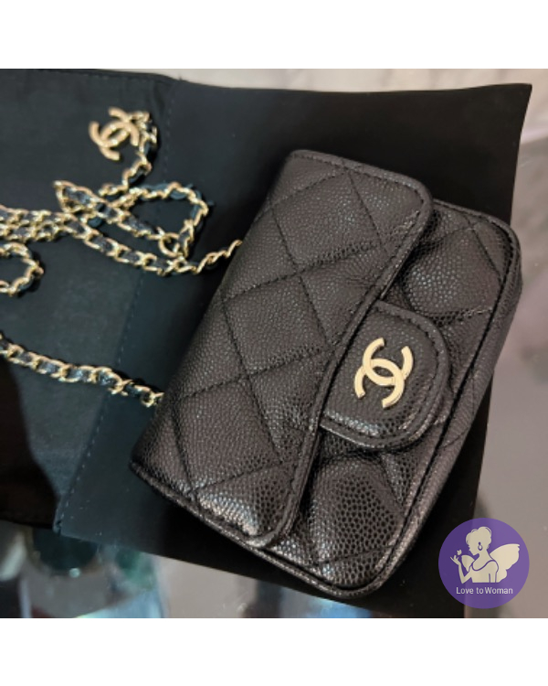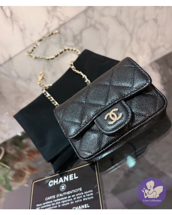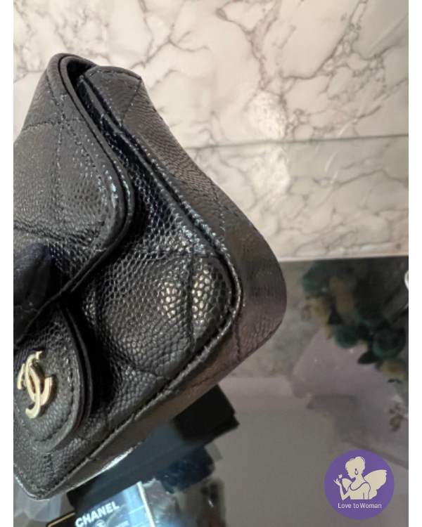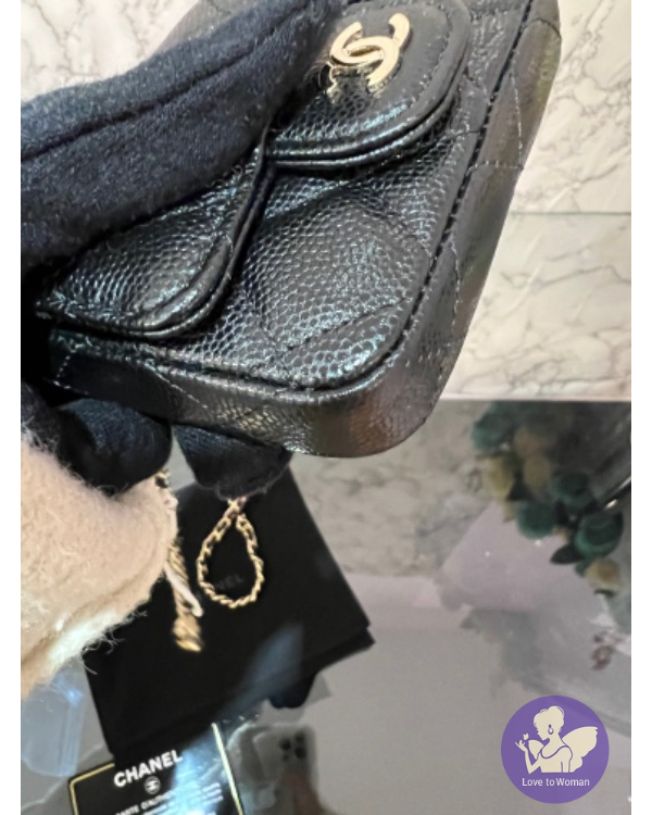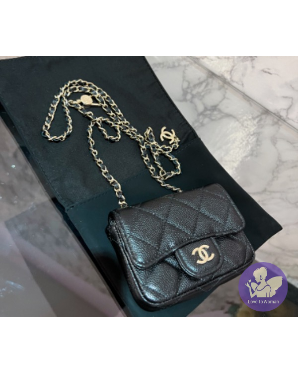 CHANEL 2022 荔枝牛皮淡金  腰包