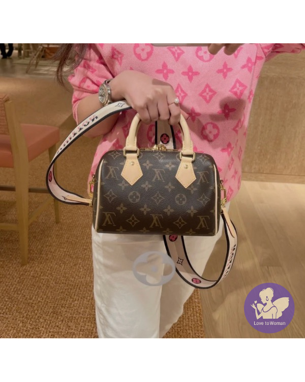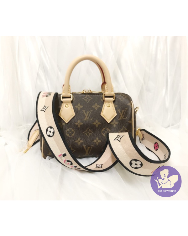 產品信息 新款speedy20,麻雀雖小 五臟俱全,非常能裝,加上新款的帆布寬背帶,背起來舒適感,看起來很別緻的字樣花朵花紋增加細緻度???????? 尺寸:20 x 13 x 12cm 附:盒子.防塵袋.小卡.鎖頭鑰匙.購證印本