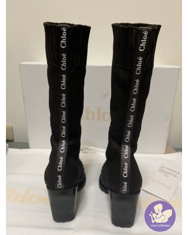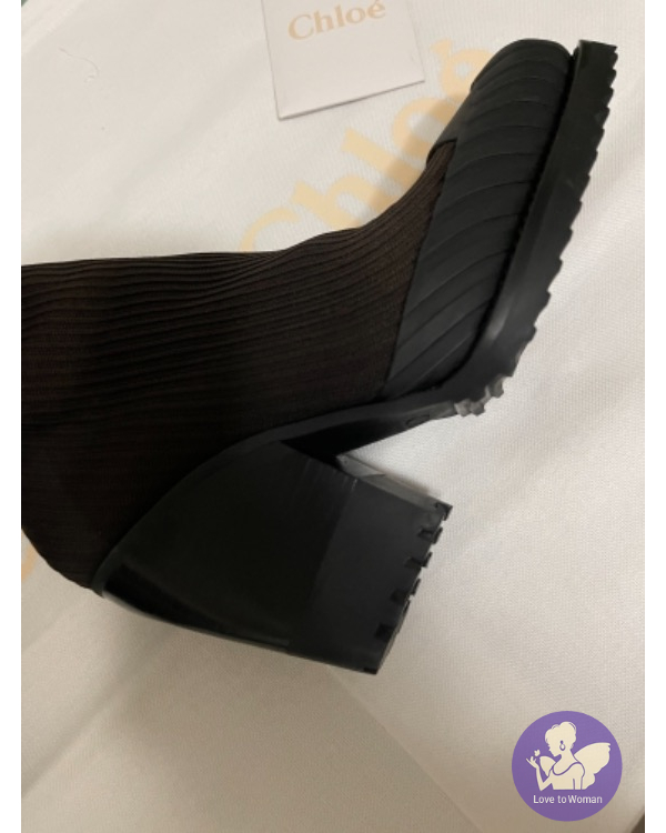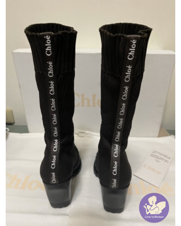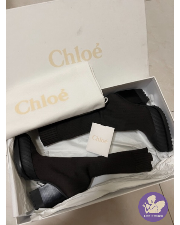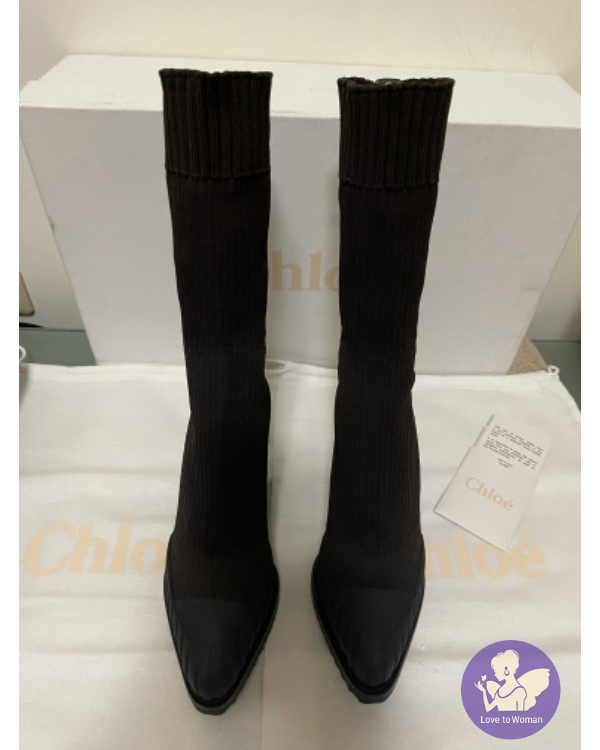 首頁 精品女鞋 全新 CHLOE 粗跟針織中筒襪套靴