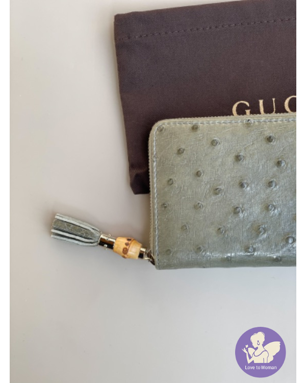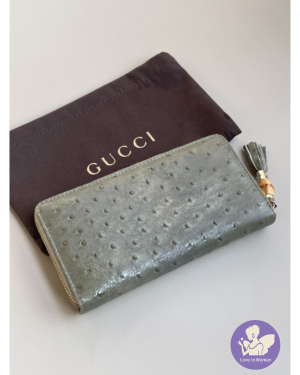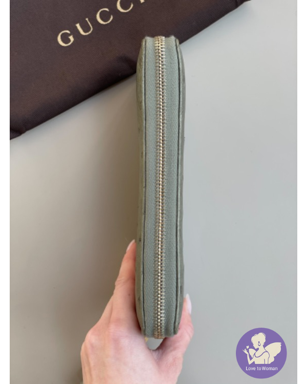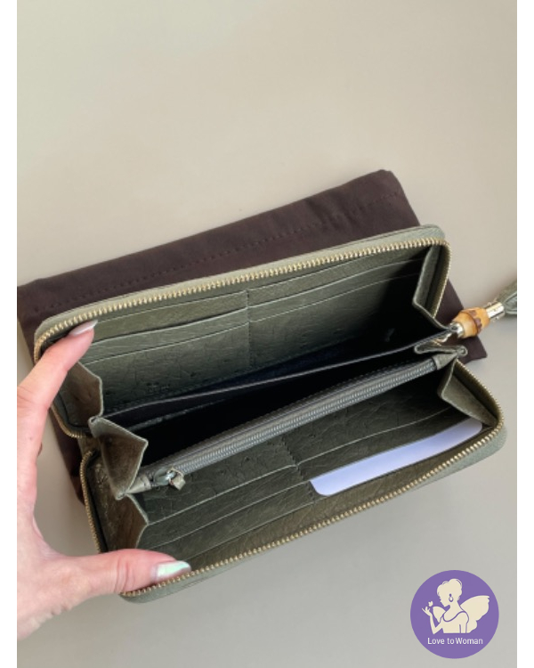 #Gucci竹節經典拉鍊長夾 古典綠????