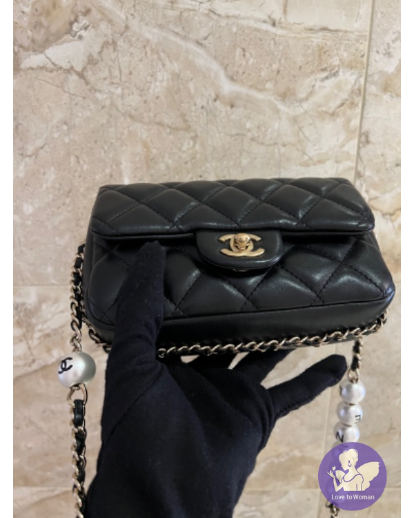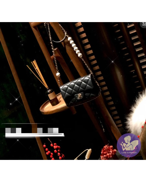 產品信息 寵編A000243 #超甜直購126000含運 Coco外型 還有邊角皮穿鍊的設計 加上貴氣的珍珠 這總季節款數量都比較少 用成肩背手提 會非常好看喔???????? 手機放的下 長17 高13 寬5 9新 正常使用痕跡 四角無磨 內裡乾淨 皮革還超澎 已經是非常防刮的羊皮了❤️ 附盒 塵套 ????????