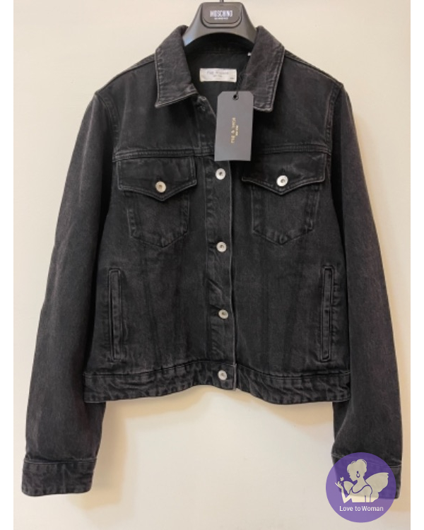 全新 Rag&Bone黑灰仿舊刷色個性牛仔外套