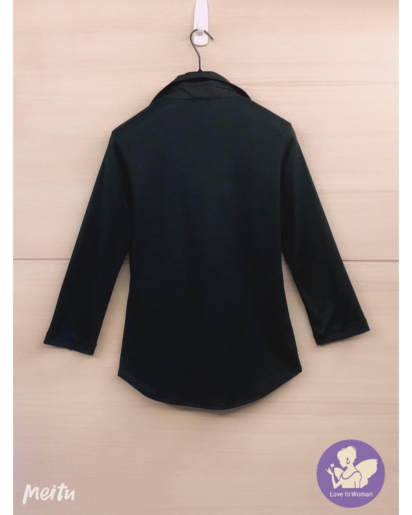 非常好的彈性棉質上衣,襯衫領是不同材質做出設計感,下擺做圓弧造型超好看