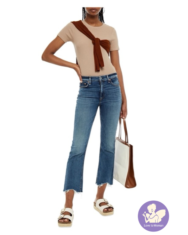 全新Rag&Bone 仿舊刷色微喇叭抽鬚牛仔褲