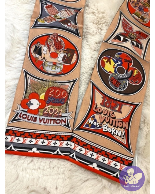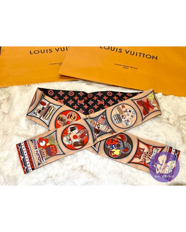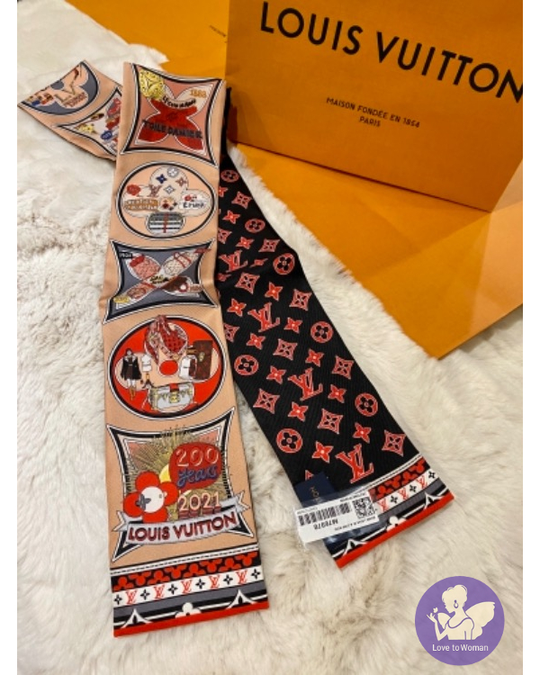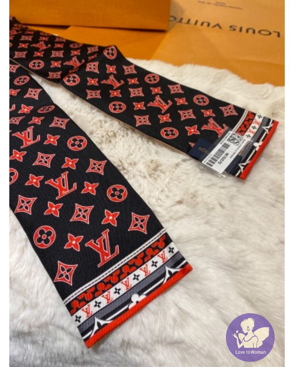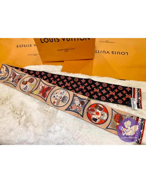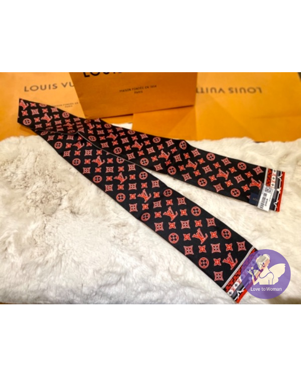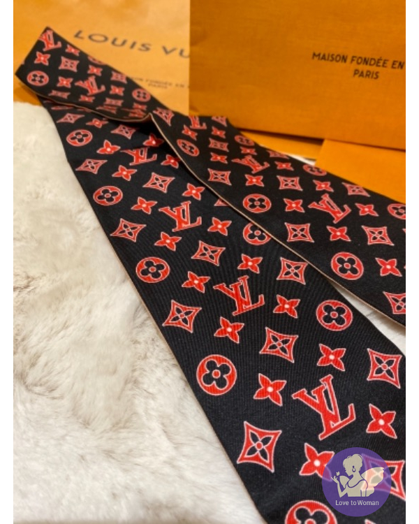 LV 紅色 200週年紀念款twilly 經典老花logo字紋 百搭萬用絲巾 (120cmX8cm) 綁包提帶、頭巾好美麗