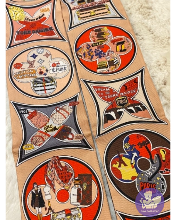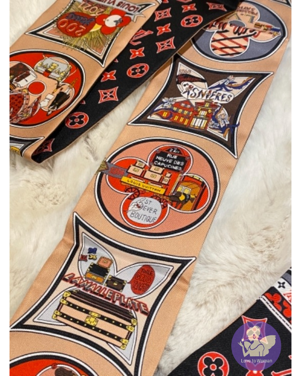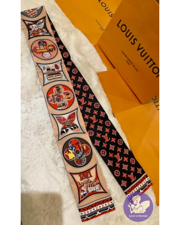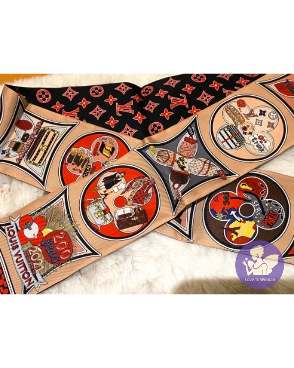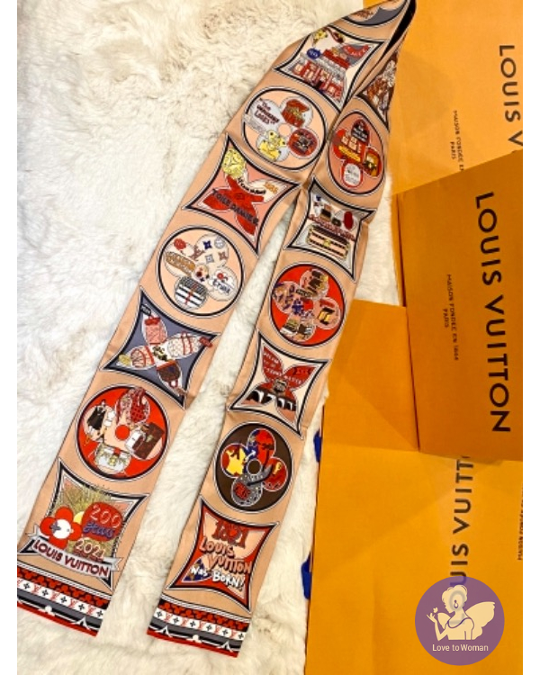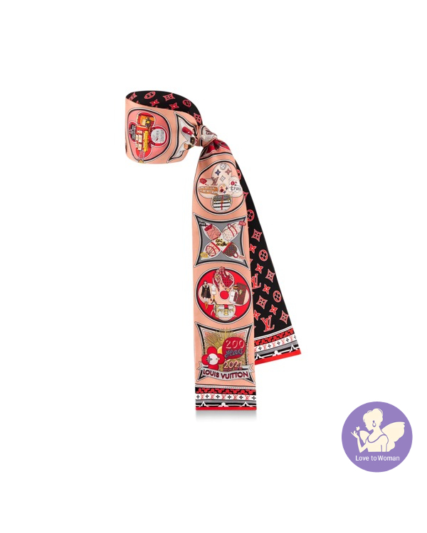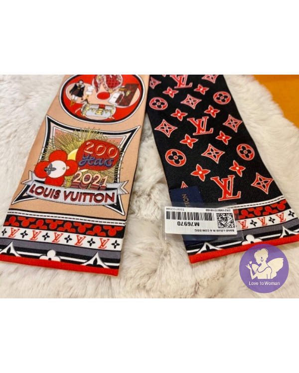 LV 紅色 200週年紀念款twilly 經典老花logo字紋 百搭萬用絲巾 (120cmX8cm) 綁包提帶、頭巾好美麗