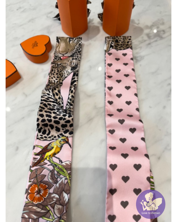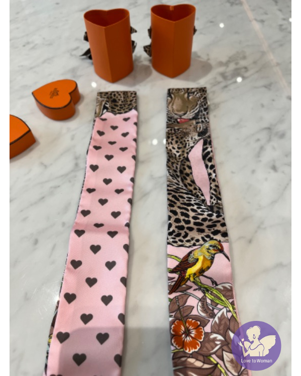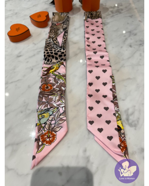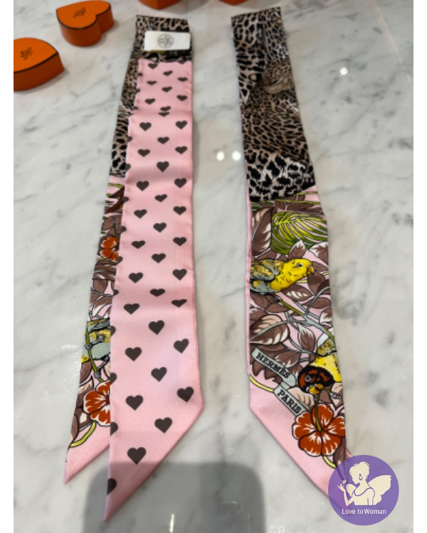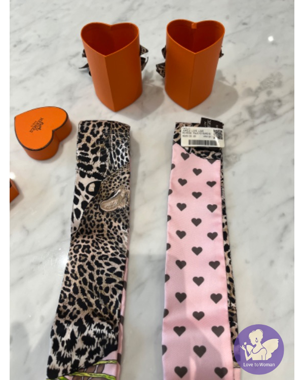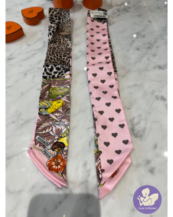 售Hermes 情人節限定ㄧ對twilly粉色愛心????