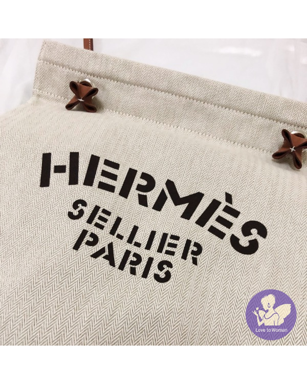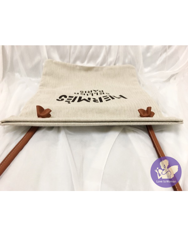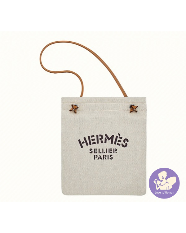 Hermes 愛馬仕 Aline Bag 經典 米白色配棕色 帆布 肩背 斜背包 飼料袋 全新✨