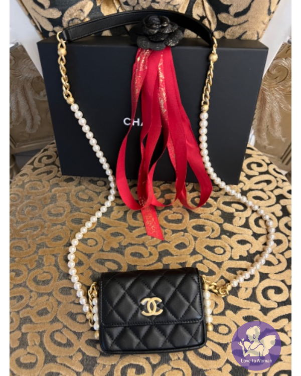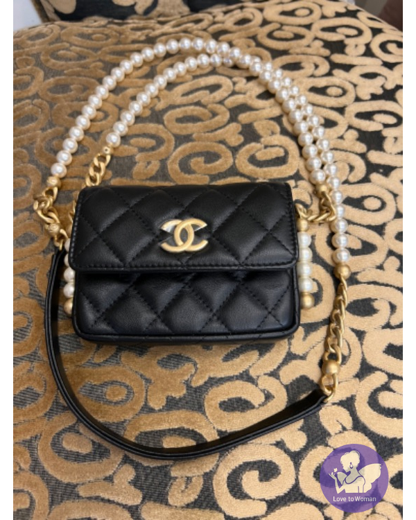 離櫃新商品Chanel 黑金 珍珠鏈mini 小廢包