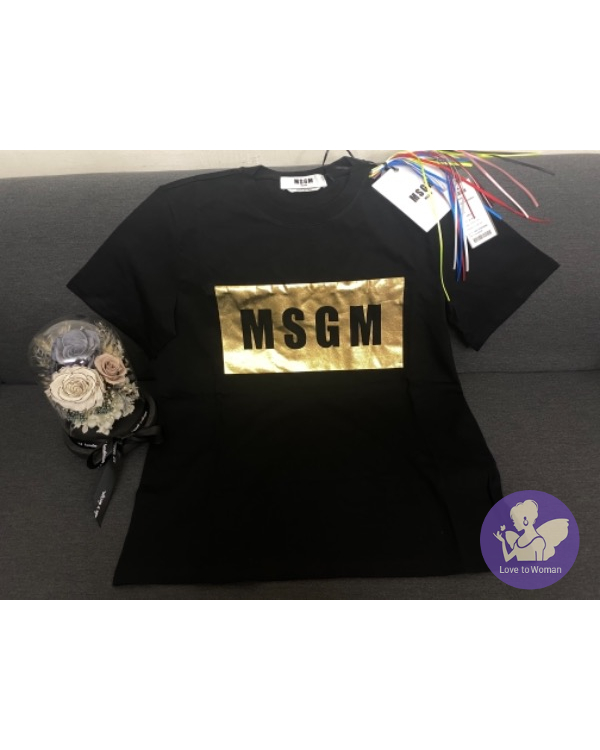 ????????????MSGM 燙金 Logo Printed 黑色T-shirt