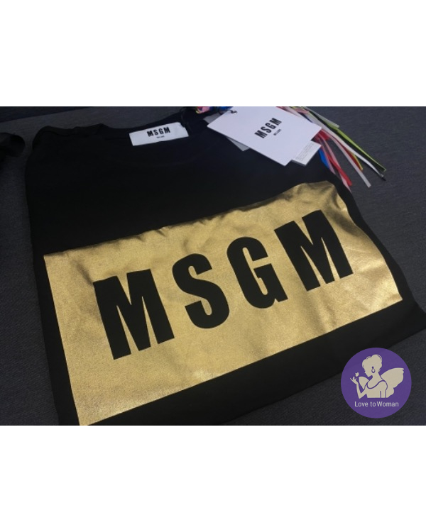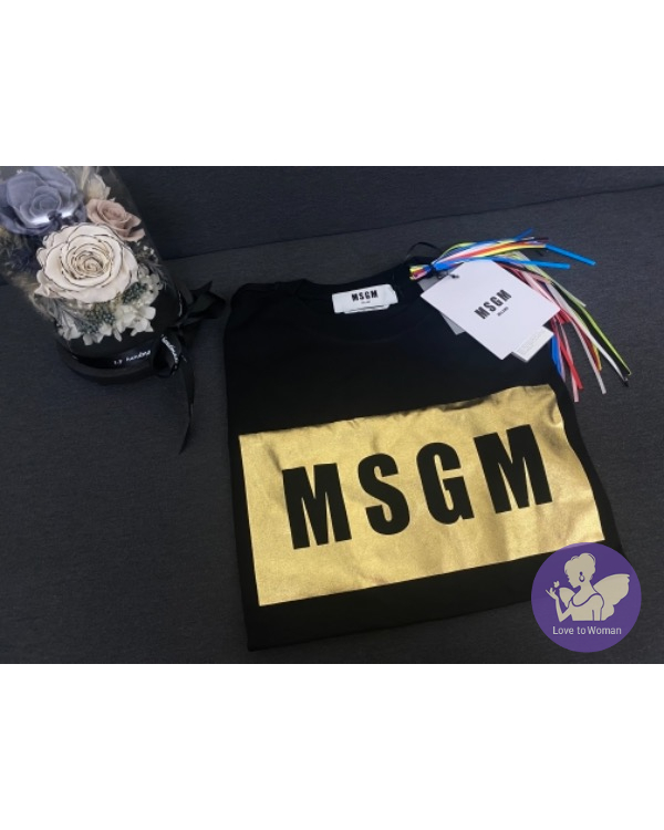 MSGM限定款T-shirt,燙金Logo字樣搭配黑色T-shirt 非常美,大人款的材質更挺而修身,義大利製質感也很好,喜愛的姐妹千萬不要錯過了????????