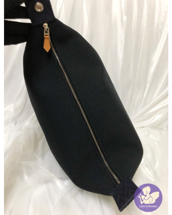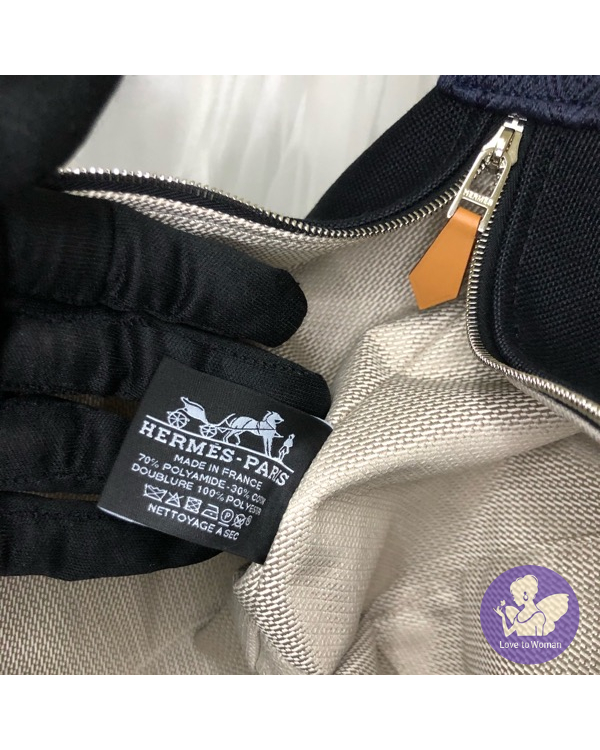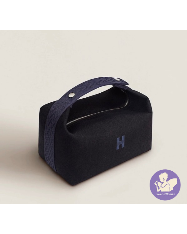 ​Hermès 愛馬仕Bride-a-Brac case, 黑色Noir/深藍Bleu Nuit 帆布 手提 收納 旅行 便當袋大號 全新✨