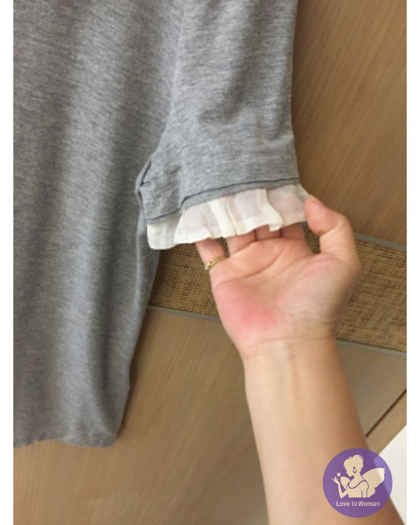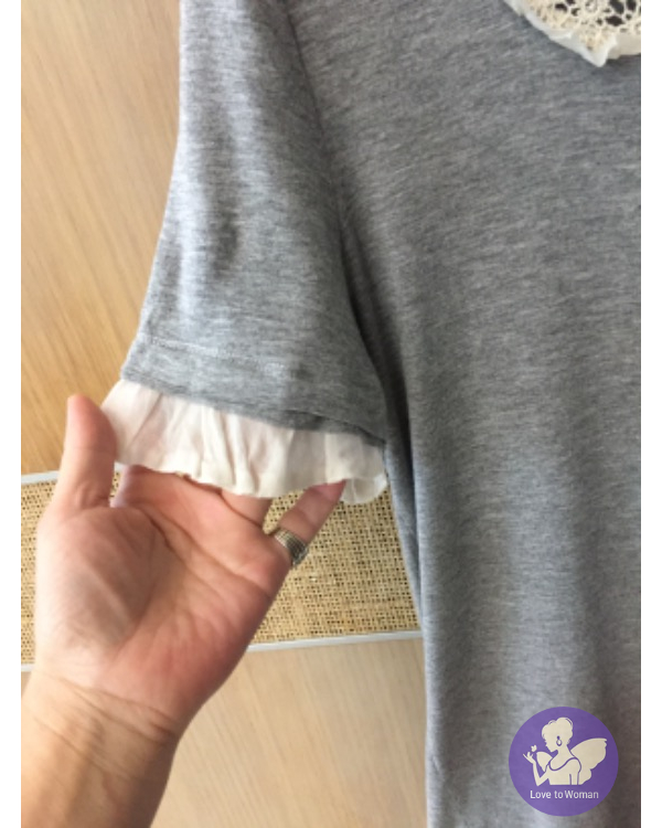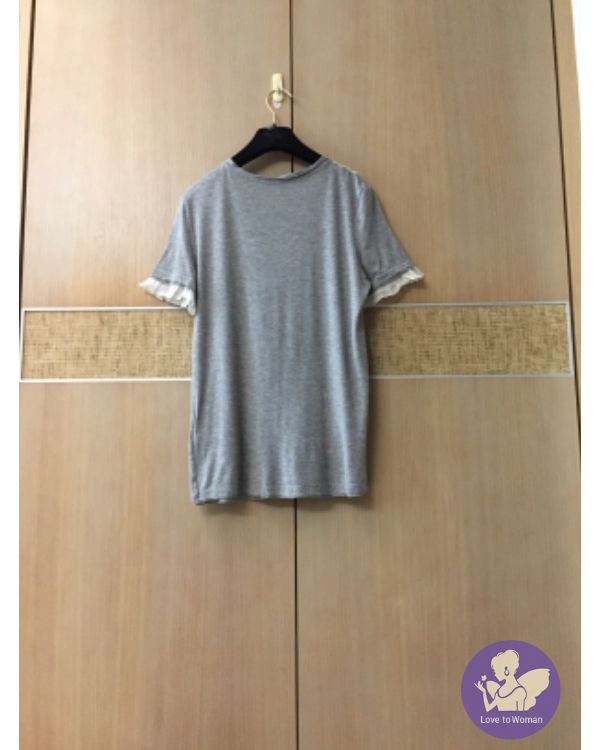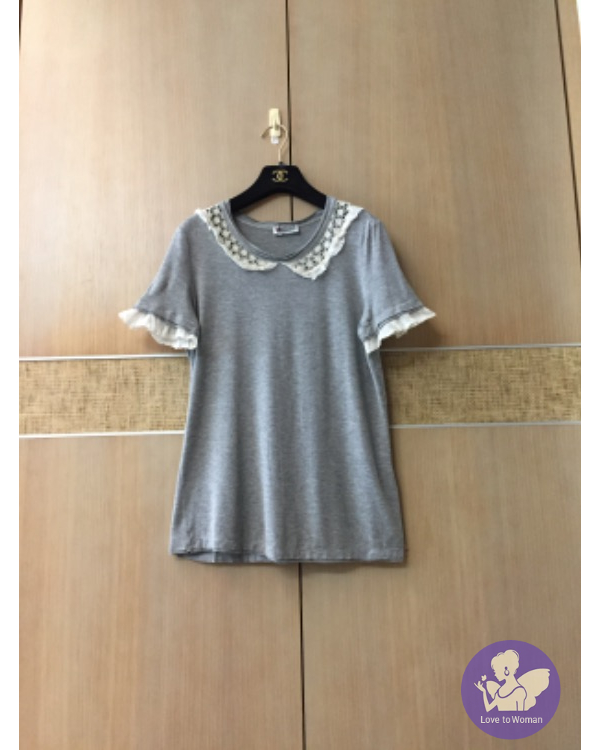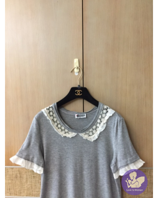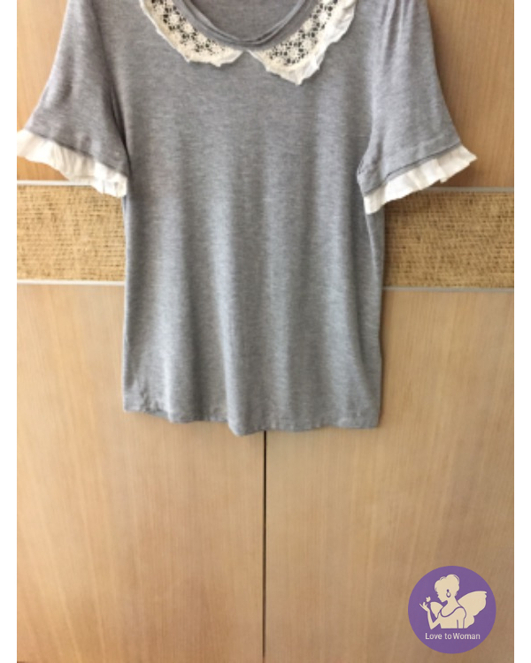 RED VALENTION灰色莫代爾棉貭蕾絲領荷葉袖上衣