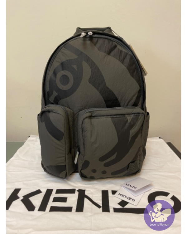 首頁 精品包包 全新KENZO中款新元素圖騰墨綠色後揹包