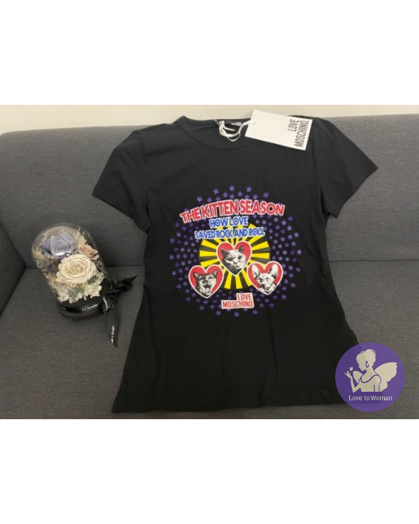 新款Love Moschino T-shirt, 喵咪狗狗圖案超可愛,黑色很顯瘦,材質非常舒服,喜歡的姐妹不要錯過了。