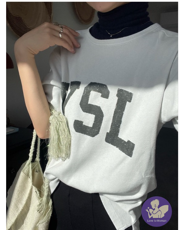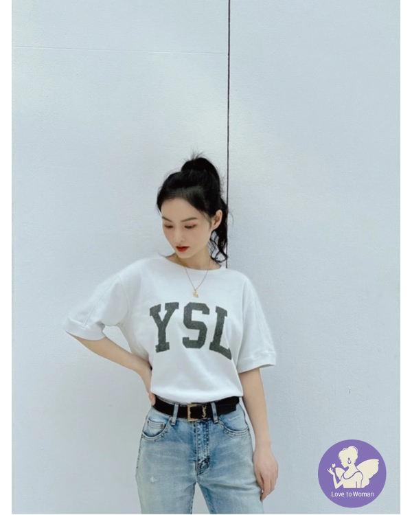 全新夯款SAINT LAURENT YSL logo經典復古短T