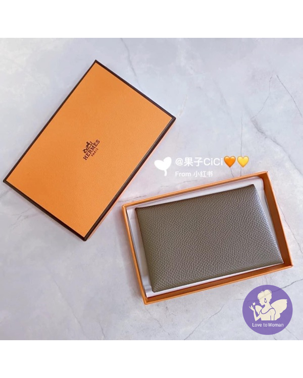 A001664 全新HERMÈS Porte-cartes Calvi 大象灰卡夾