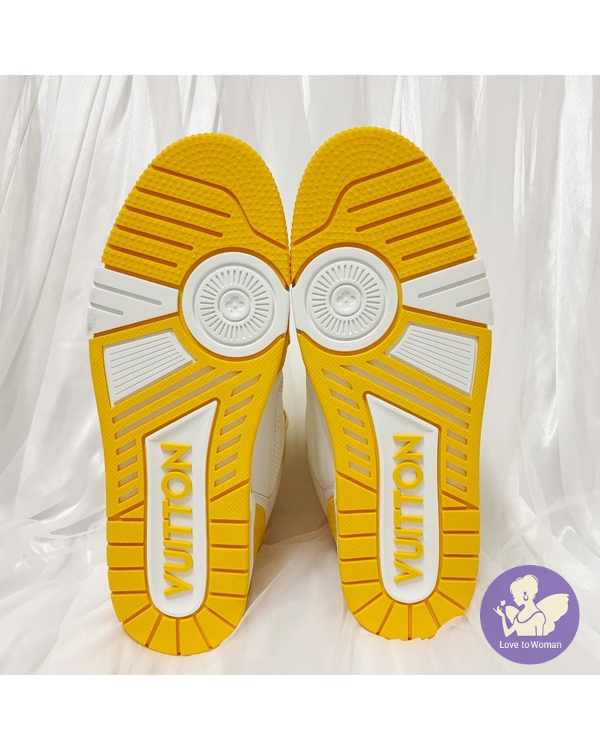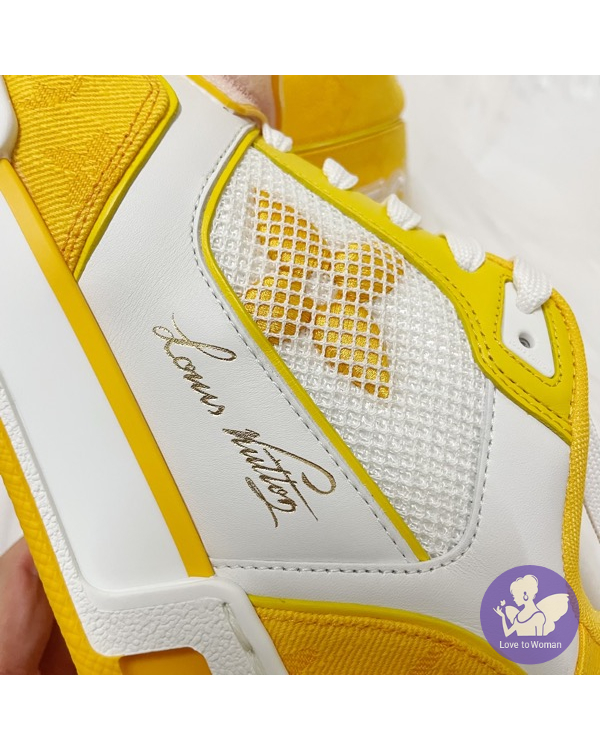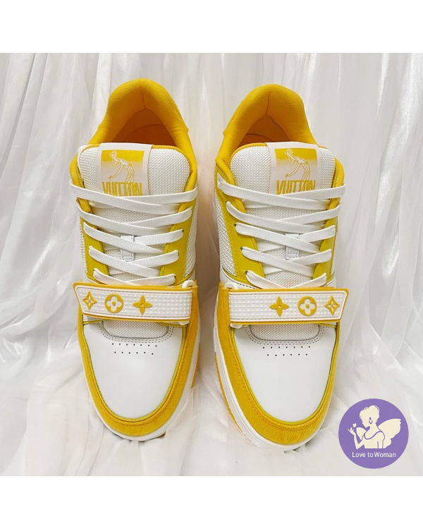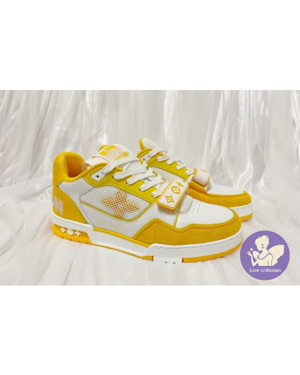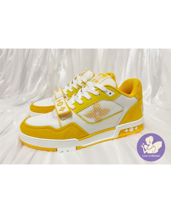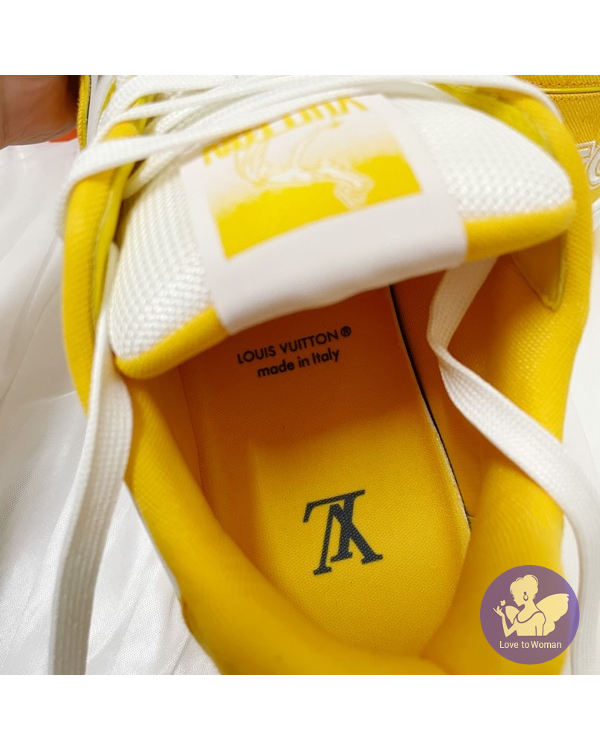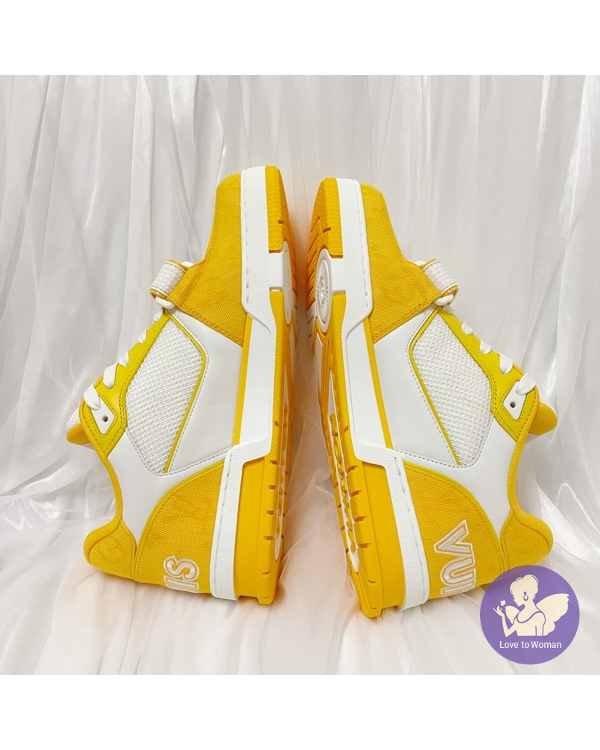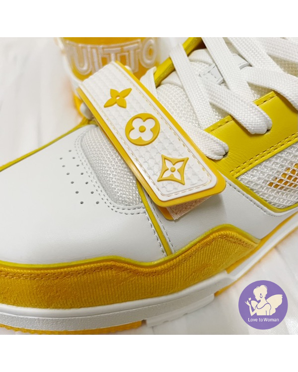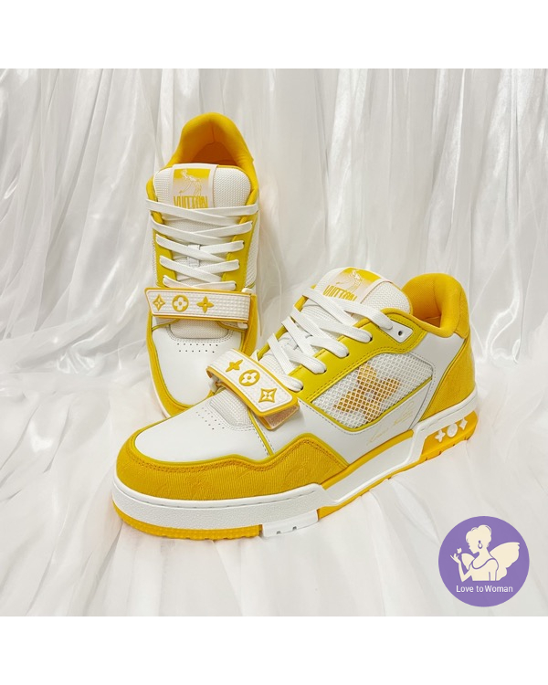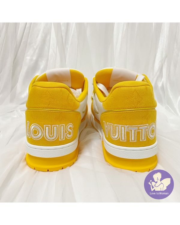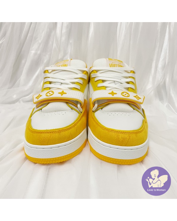 首頁 男仕精品 ​LV 路易威登 新款 限量 TRAINER 1A9ZDA牛仔 黃色 魔鬼氈 運動鞋 7號 全新✨