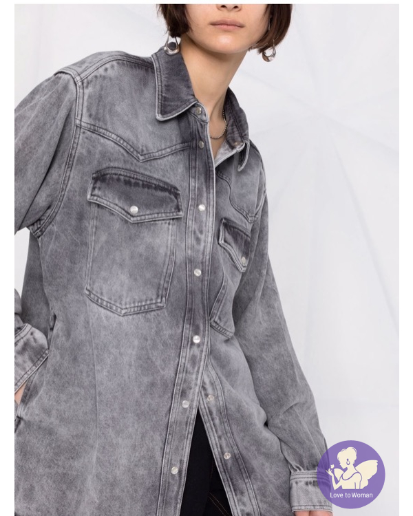 首頁 精品服飾 全新法國最火品牌 ISABEL MARANT 灰色復古單寧牛仔襯衫