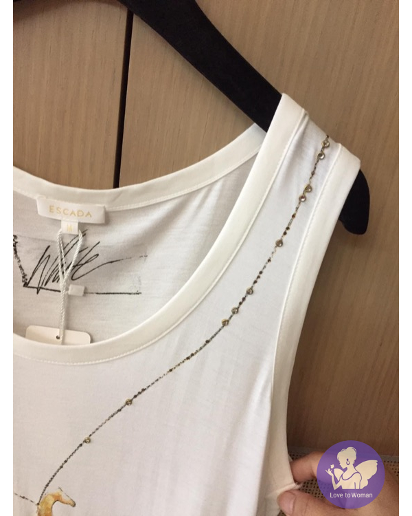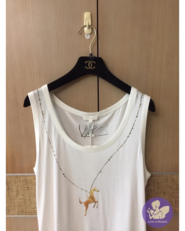 清爽的米色絲光棉材質非常舒適涼爽小馬圖案可愛耀眼上面鑲嵌SWAROVSKI水鑽細緻別緻簡單的背心做工非凡買太多沒穿到分享給喜歡的美女 分享家$2280含運售出不退感謝辛苦管理員謝謝美女們推喔她團