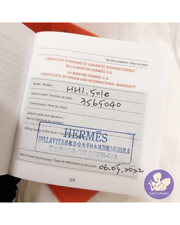防水達3大氣壓。配戴Hermès皮革錶帶腕錶時,請避免與水接觸。