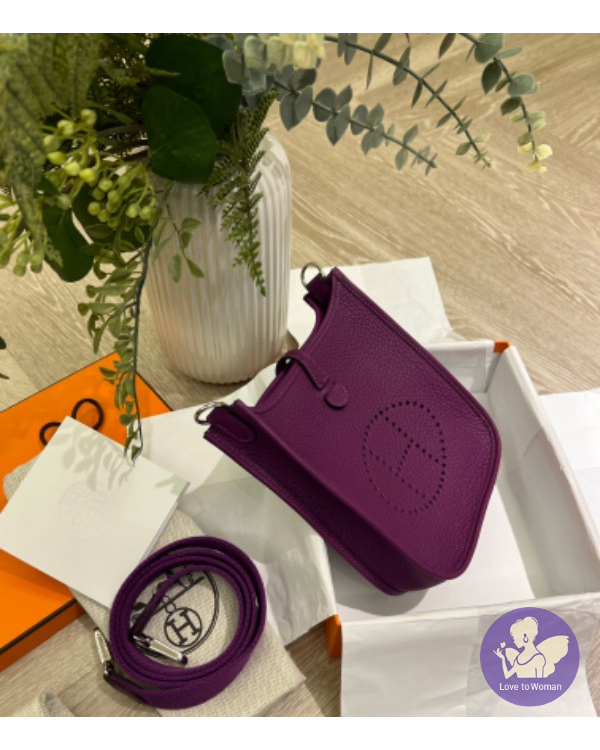 首頁 精品包包 Hermès mini evelyne P9 Z 海葵紫 全新