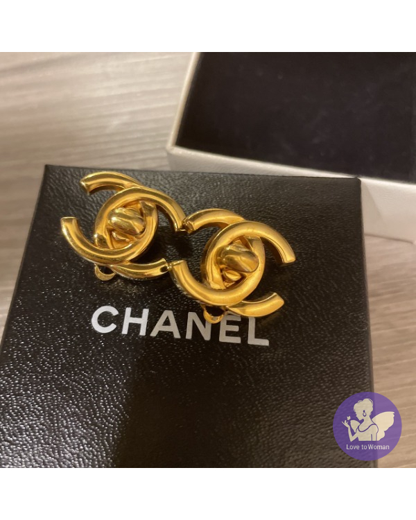 Chanel Vintage書包扣 夾式耳環金色 小號2.1cm ????