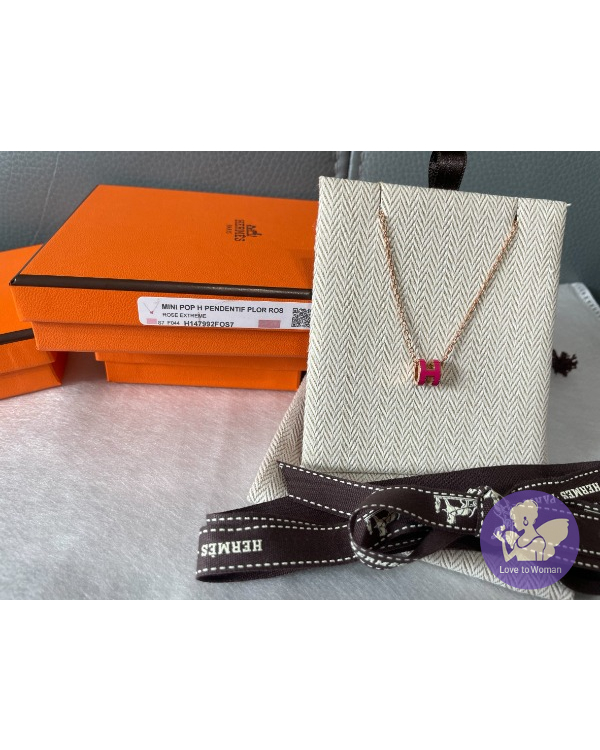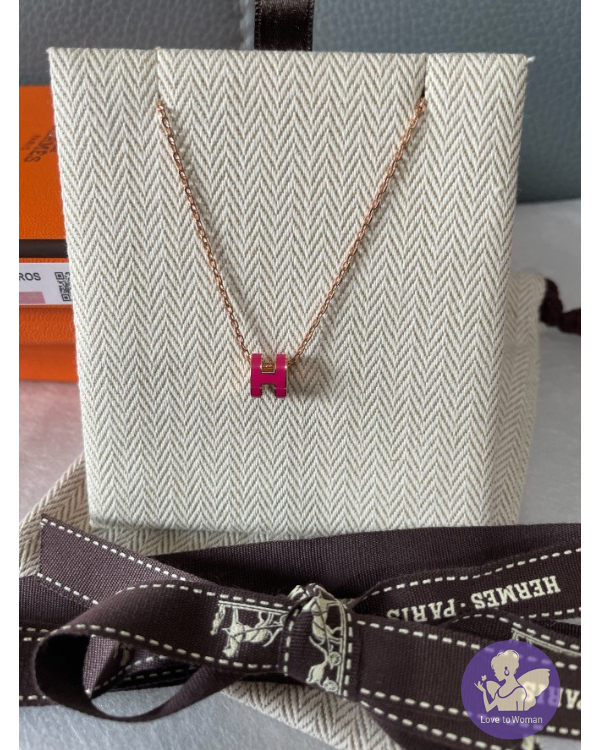 Hermes mini pop H經典立體橢圓簍空項鍊(桃&玫瑰金)