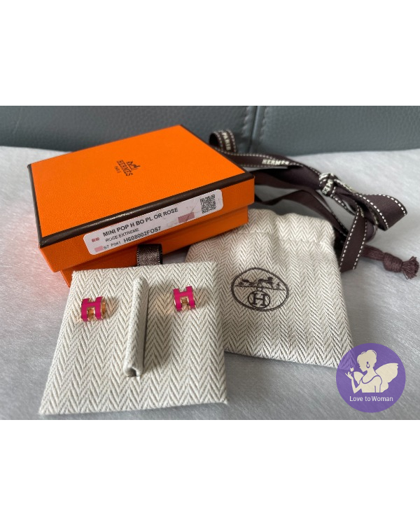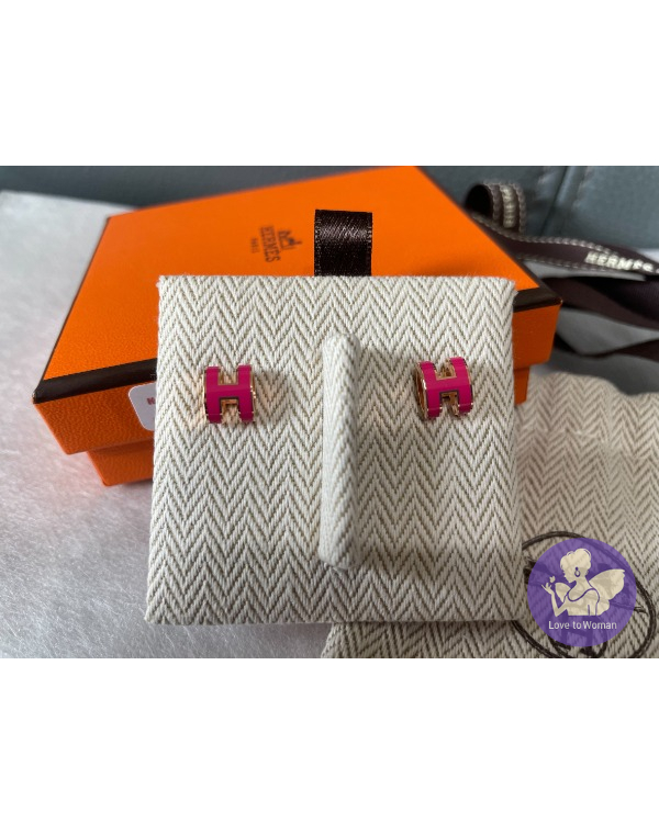 Hermes mini pop H經典簍空耳環(桃&玫瑰金)