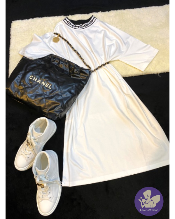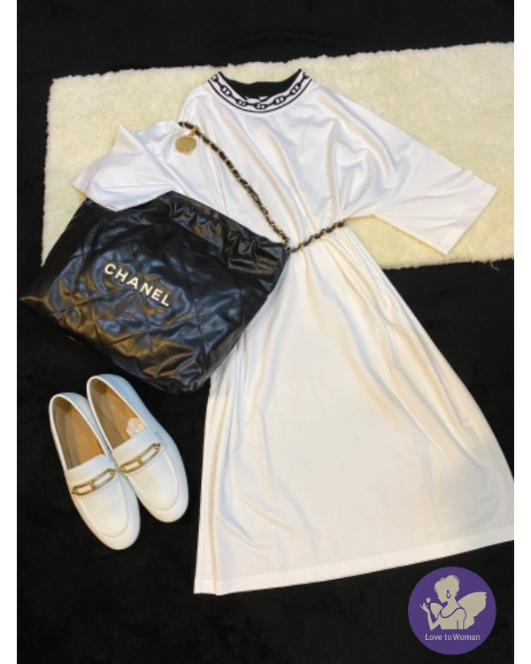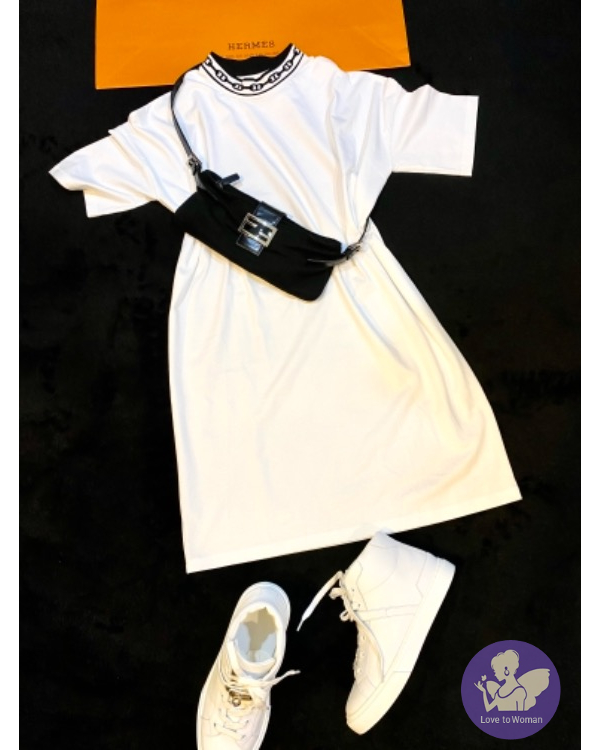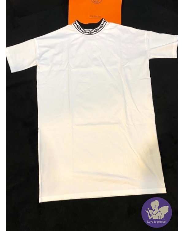 HERMES 經典豬鼻子織繡白色棉T洋休閒洋裝 秒殺搶手夯款
